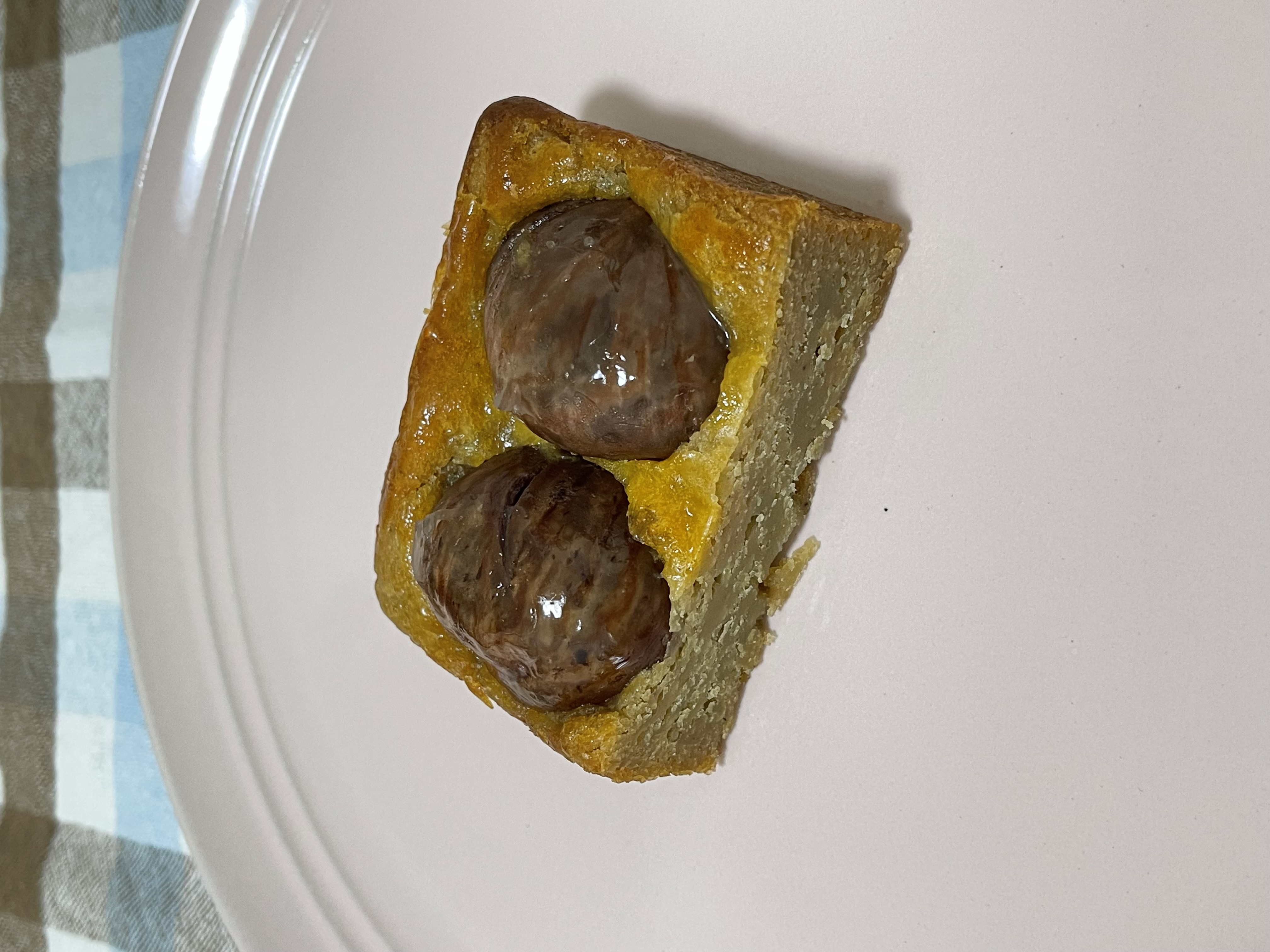 栗の旨味と香りがギュッと詰まった焼菓子であることが、断面からうかがえます。