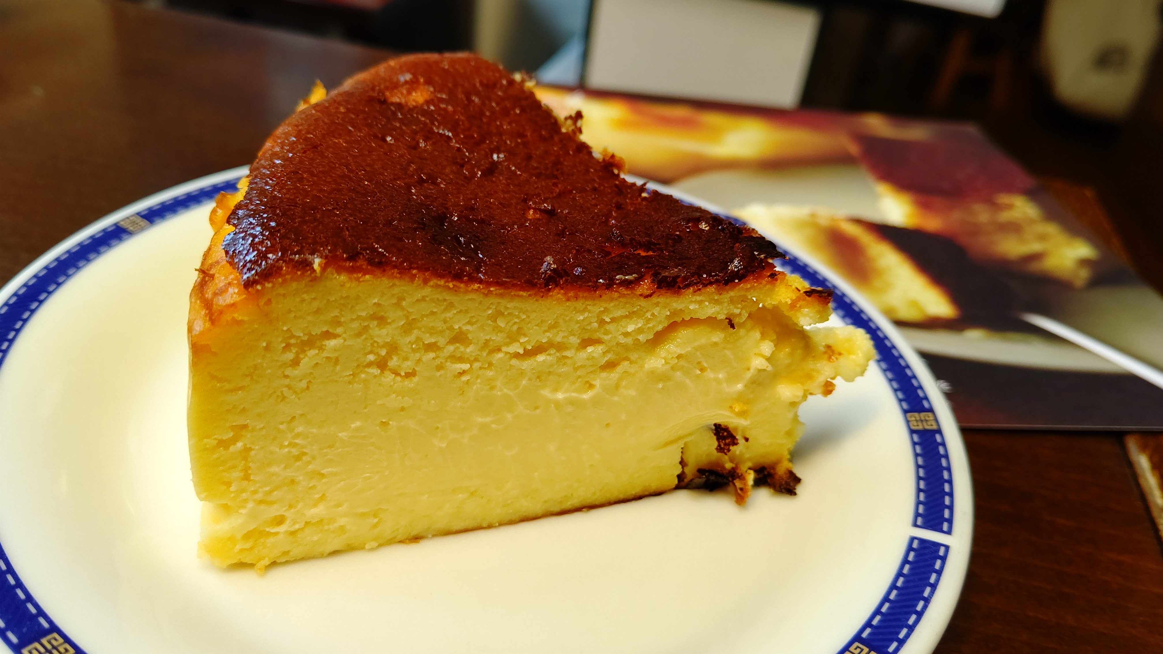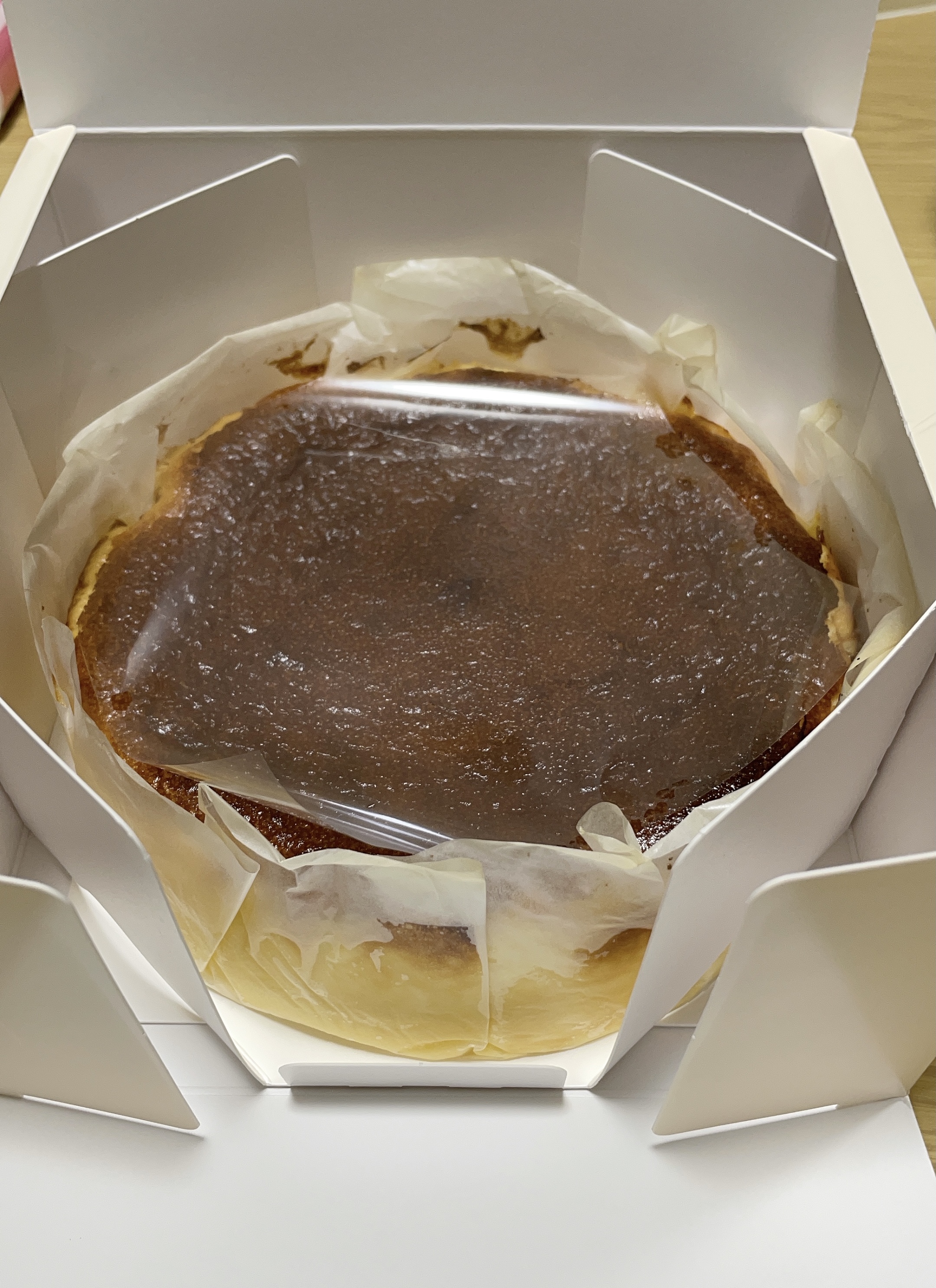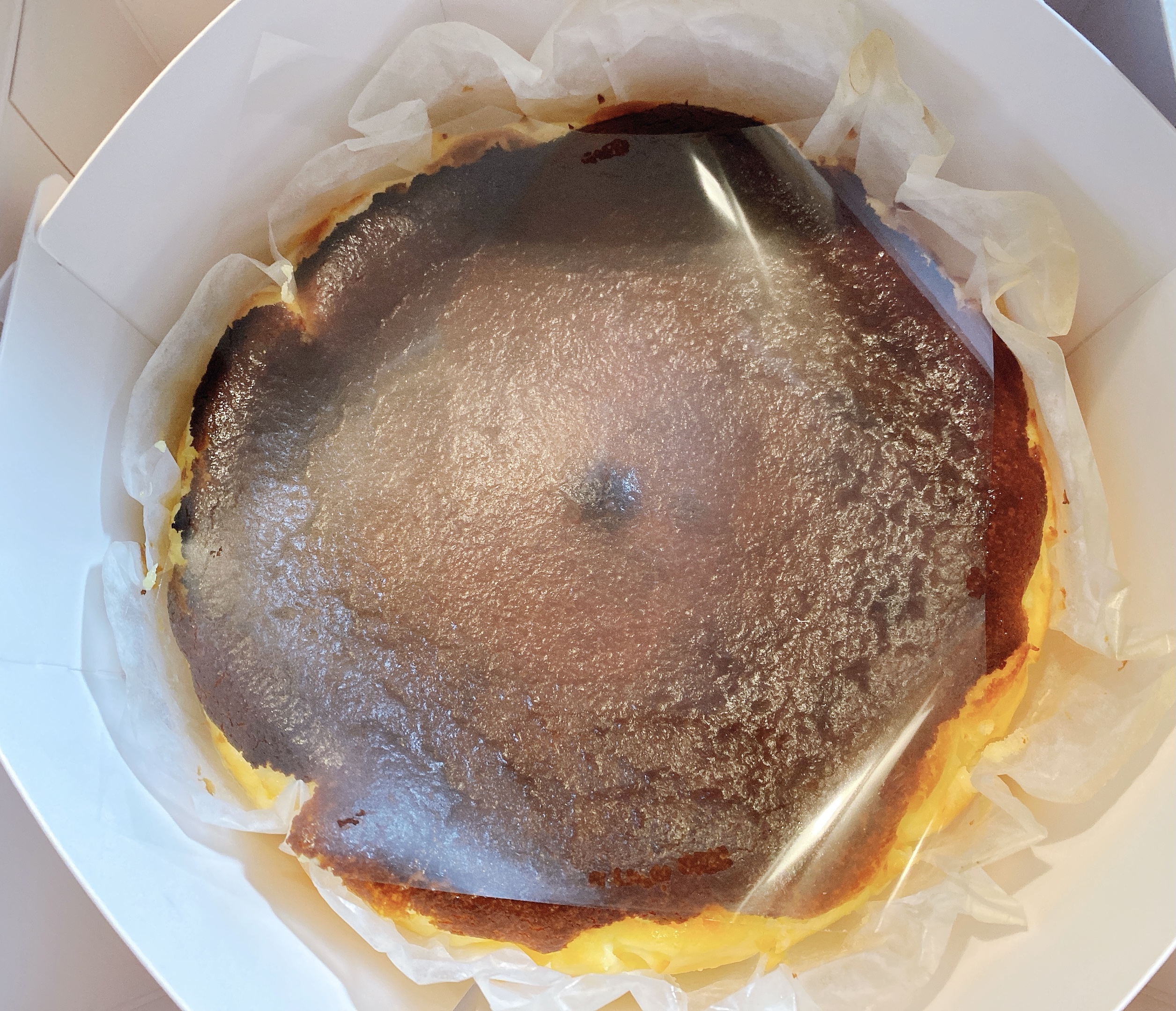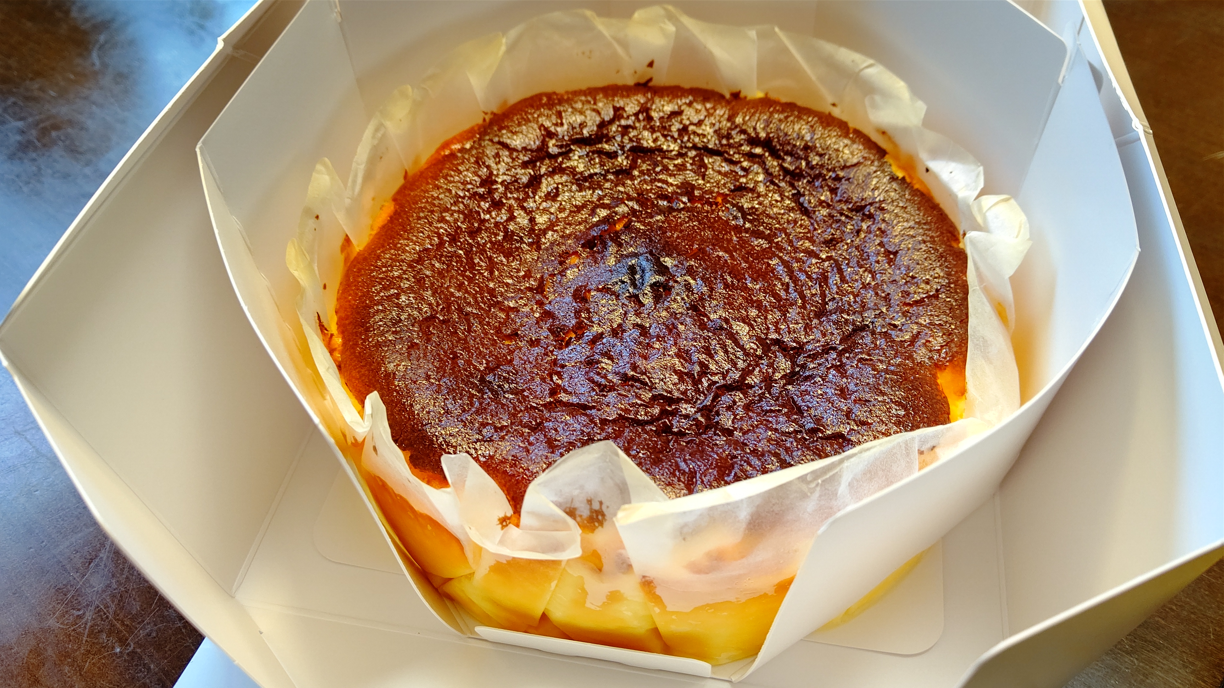 しっかり目の焼き目も香ばしい「バスクチーズケーキ」です。クリーミーでコクのあるクリームチーズをたっぷり使用し、外は香ばしく中はトロッとレアな食感が特徴。 濃厚でクリーミーなクリームチーズの旨味がぎゅっと凝縮されたチーズケーキです。シンプルなレシピながら、匠の火入れによる絶妙な火加減とタイミングで素早く高温で焼き上げています。窯から出した後の余熱でじっくり、中がレアな食感を残すように火を入れます。よりまろやかな味わいになるよう、一晩寝かせて仕上げています。焼き目の香ばしい風味、とろけるようなチーズの美味しさを楽しめます。