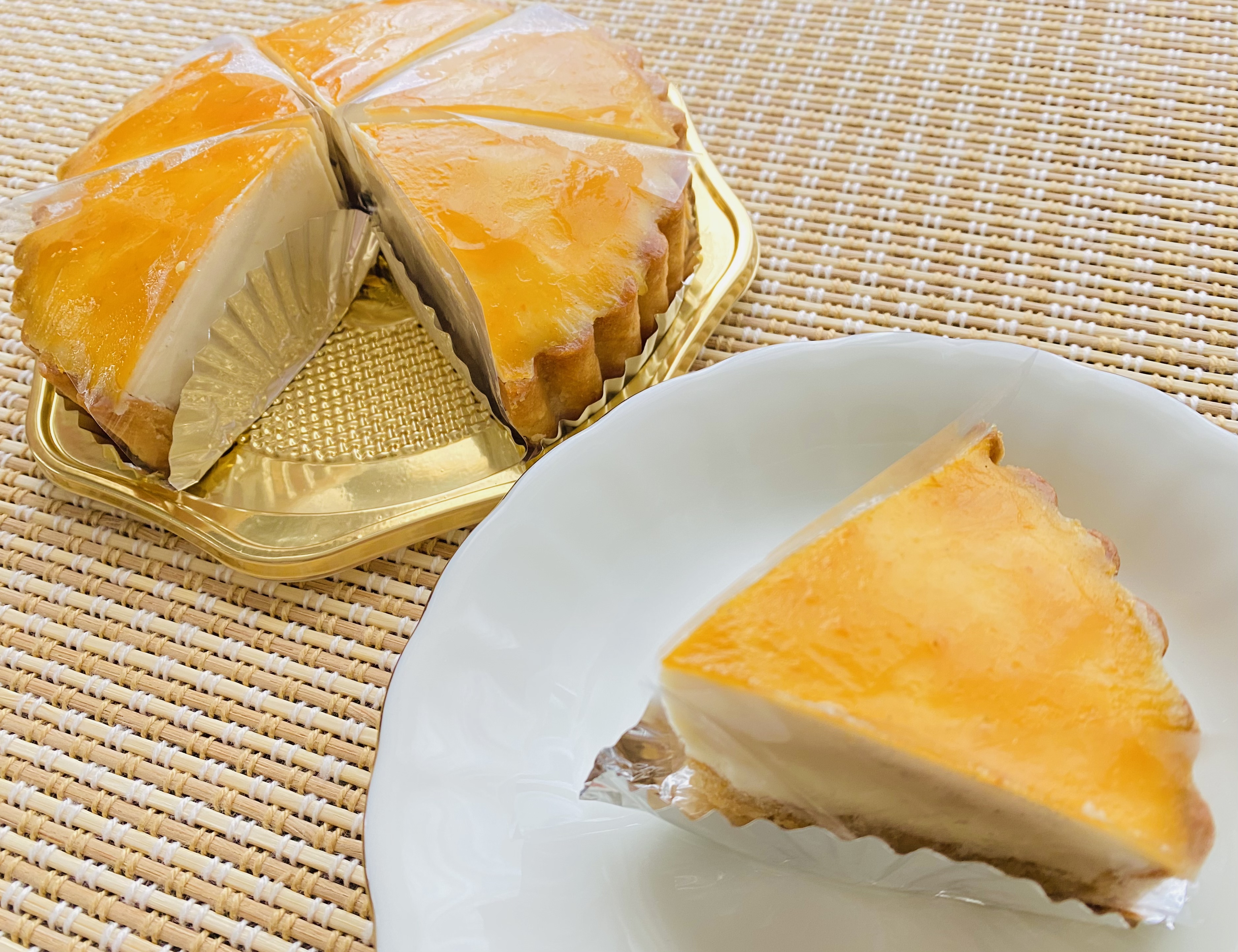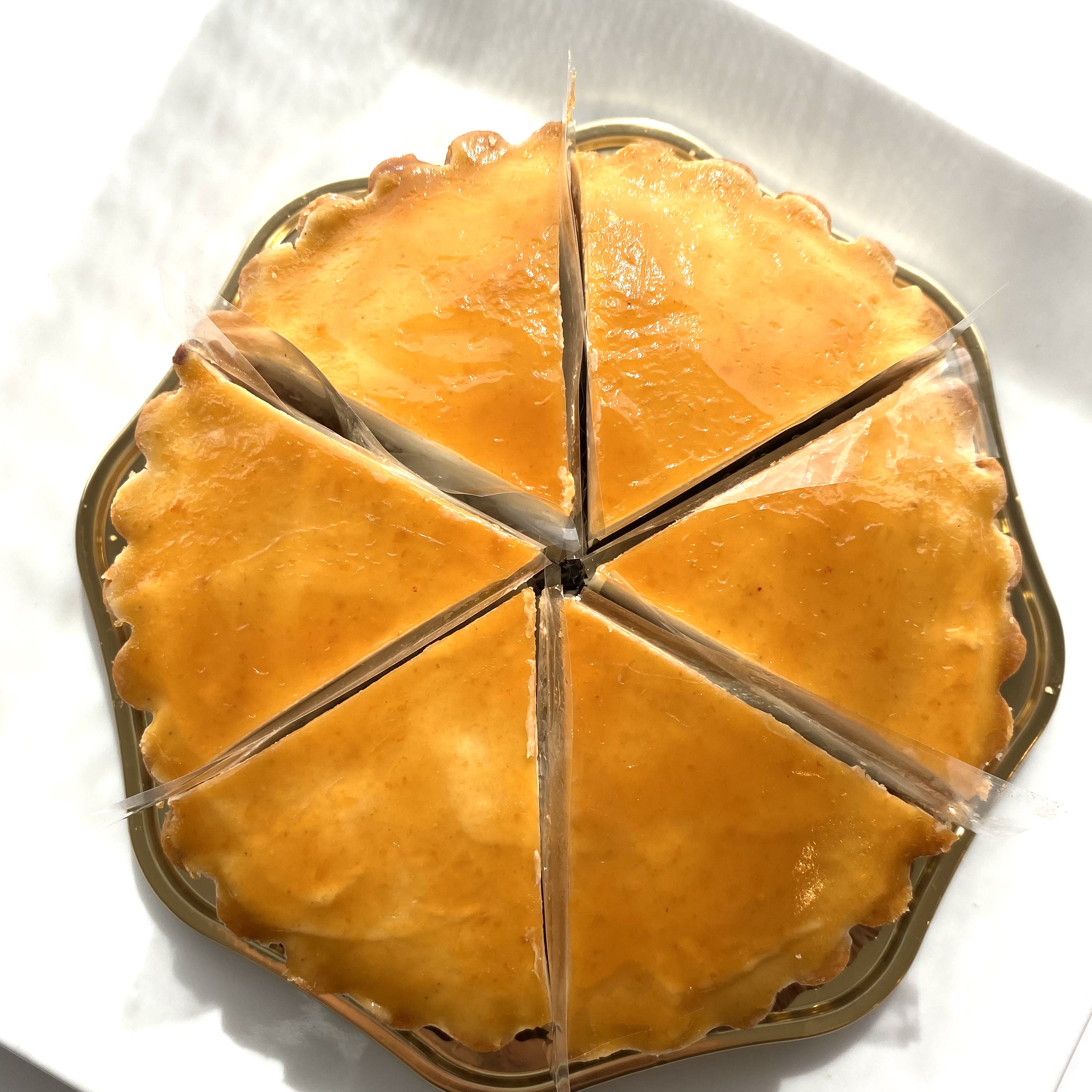 表面にアプリコットジャムがぬられているので見た目もかわいいチーズケーキ!