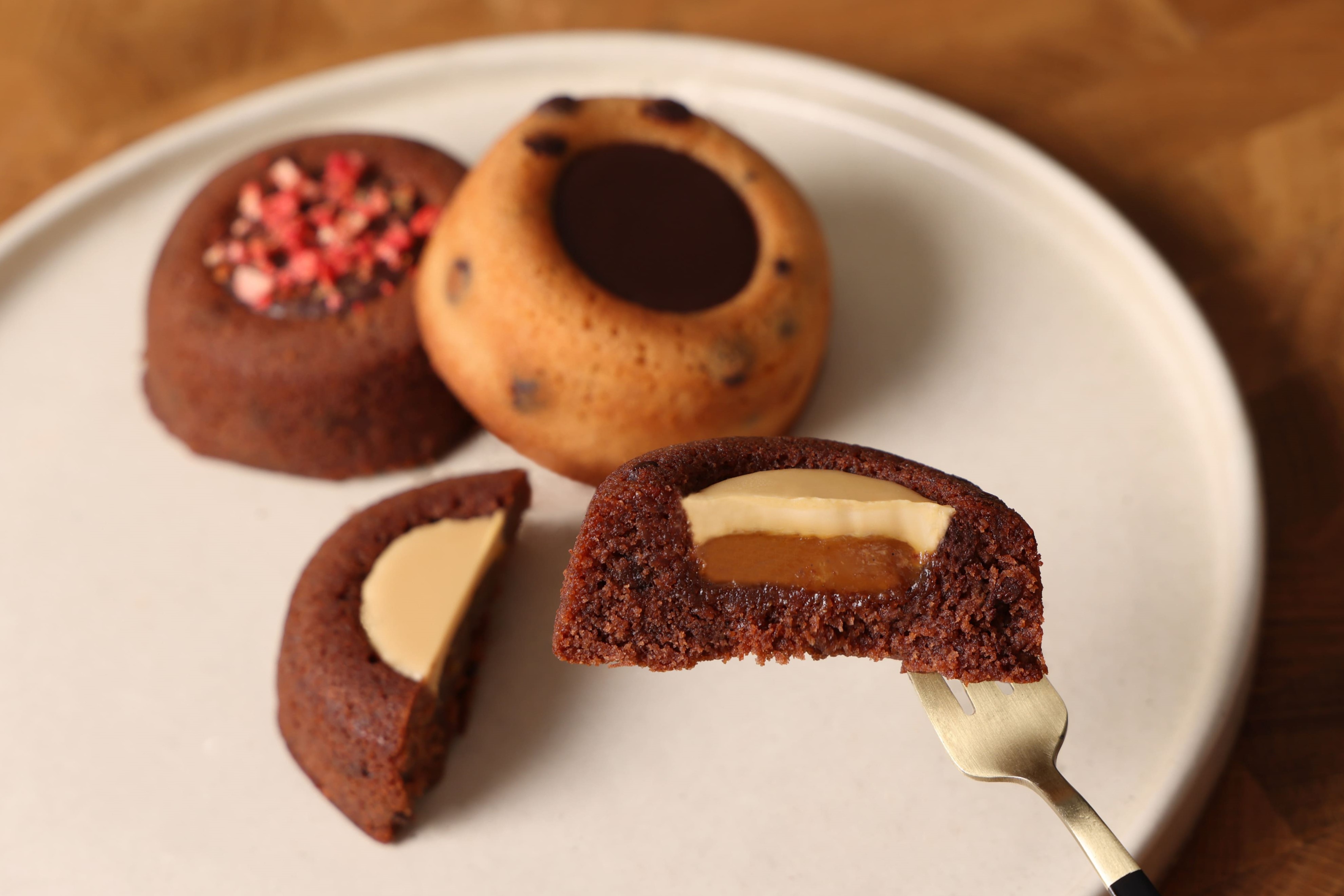 フィナンシェベースの丸い生地にチョコチップが練り込まれ、真ん中にはたっぷりのジャムやガナッシュが流し込まれたティグレで素敵な時間をお過ごしください。