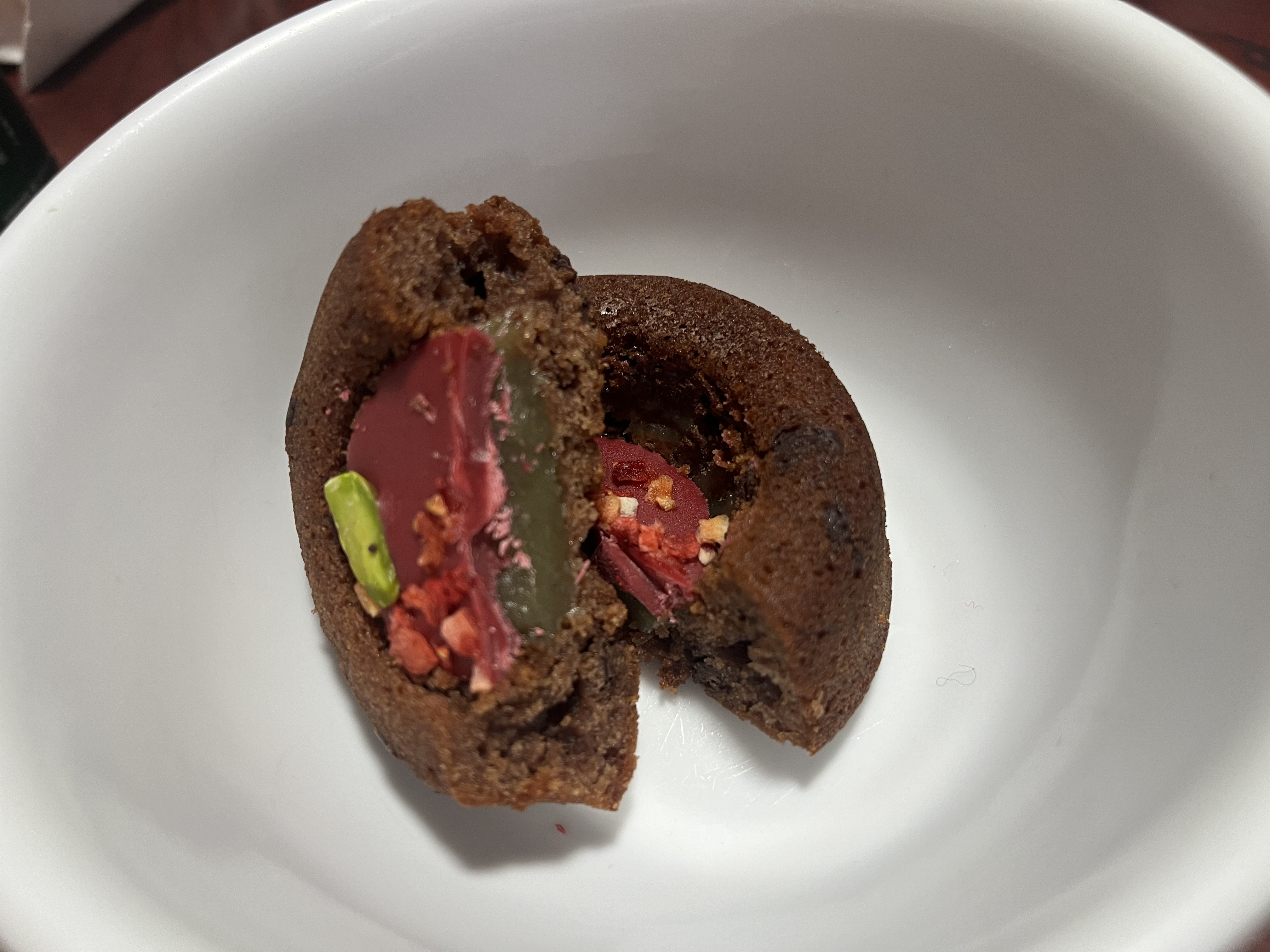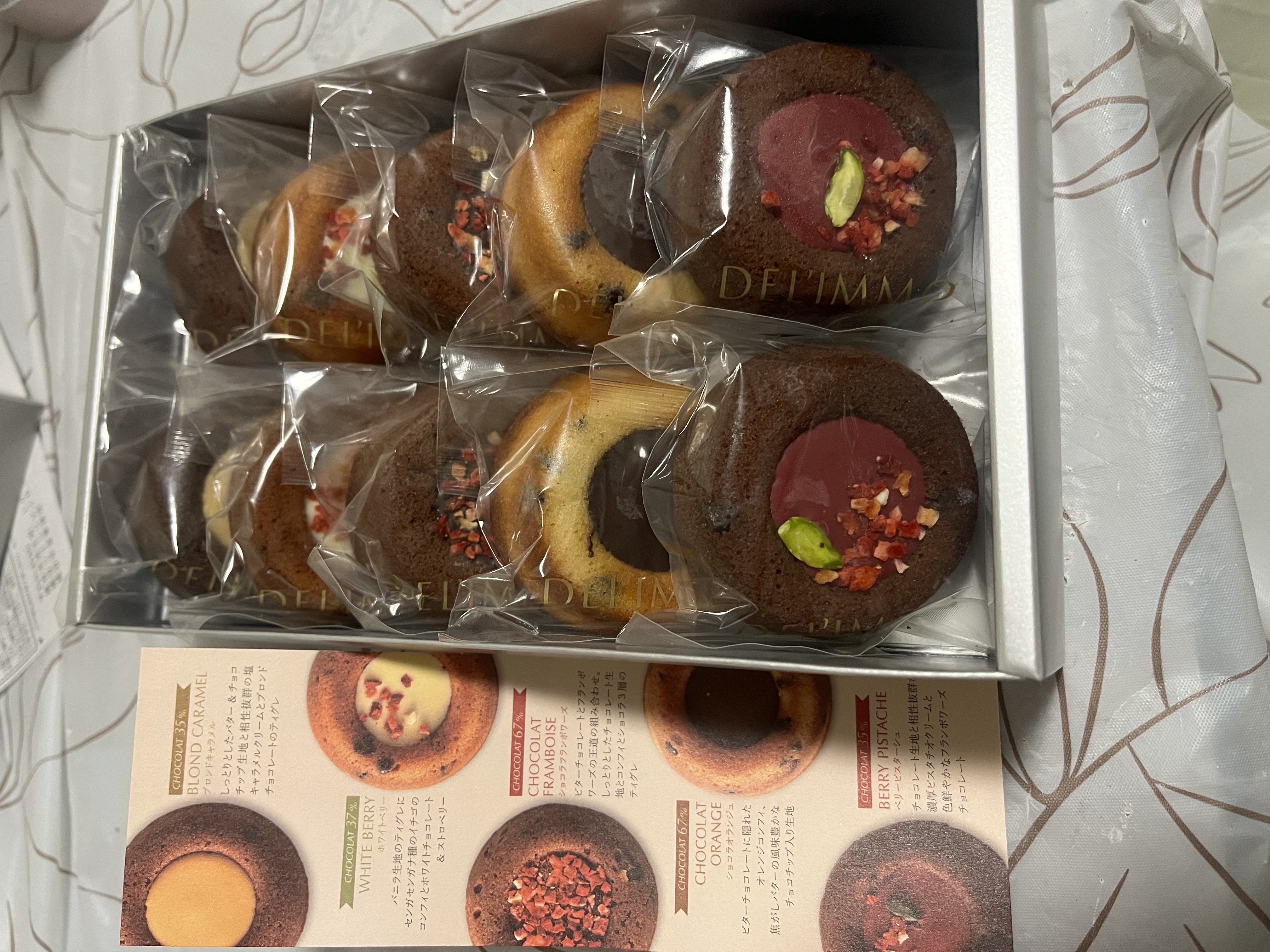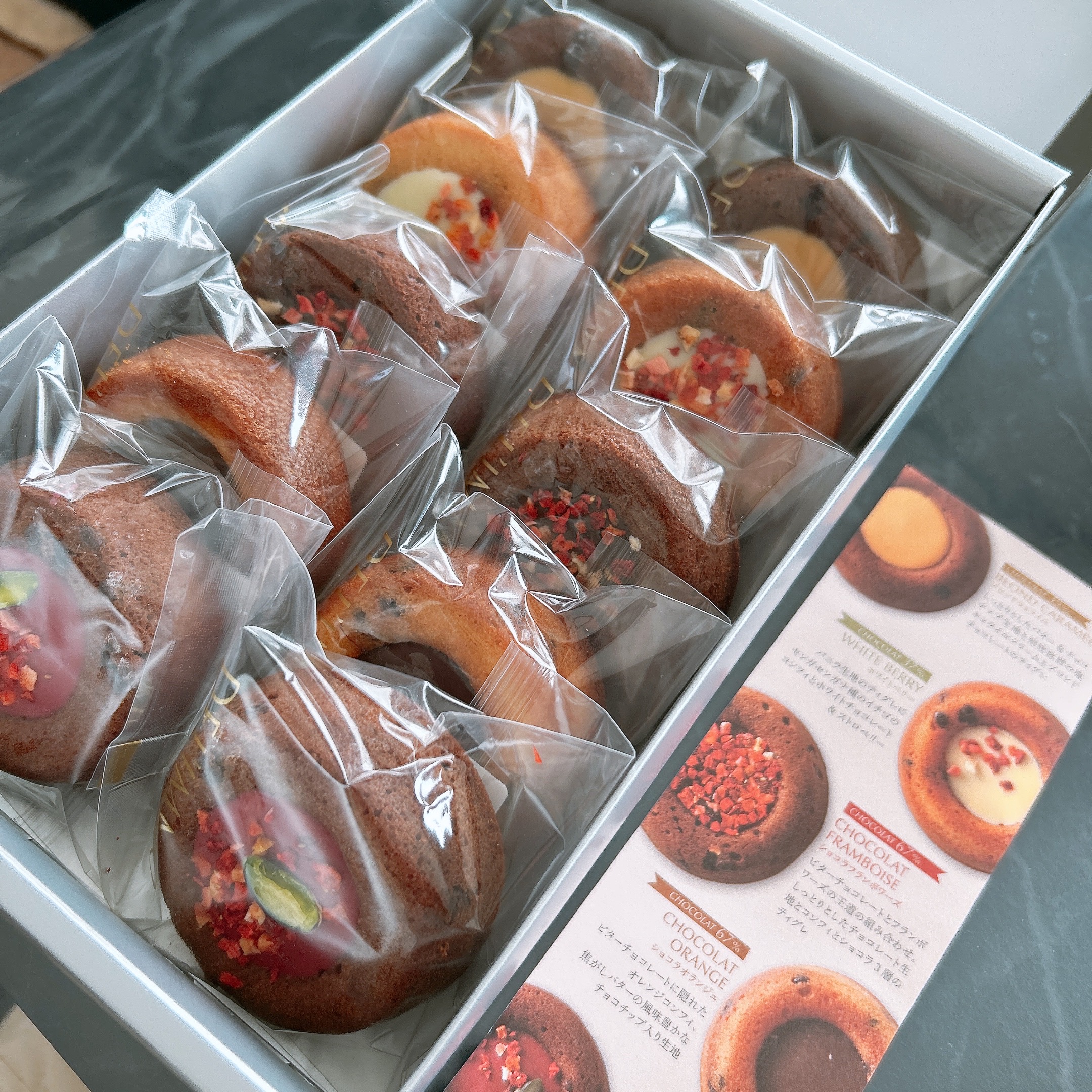 ショコラオランジュは、ビターなチョコレートと爽やかなオレンジの香りがマッチして、サッパリとした香り豊かな味わいでした。ホワイトベリーは、ホワイトチョコレートが生地と相性良く、甘すぎずにストロベリーの香りが広がって大人の味でした。ブランドキャラメルが1番お気に入りで、ショコラの甘さを塩キャラメルが引き立て、口いっぱいにキャラメルとバターの香りが広がりました。ベリーピスタージュは、濃厚な味わいでピスタチオ好きにはたまりません。ショコラフランボワーズは、ジャムの酸味が程よく、果実感もあり、ショコラ生地がとにかく濃厚でとっても美味しかったです!