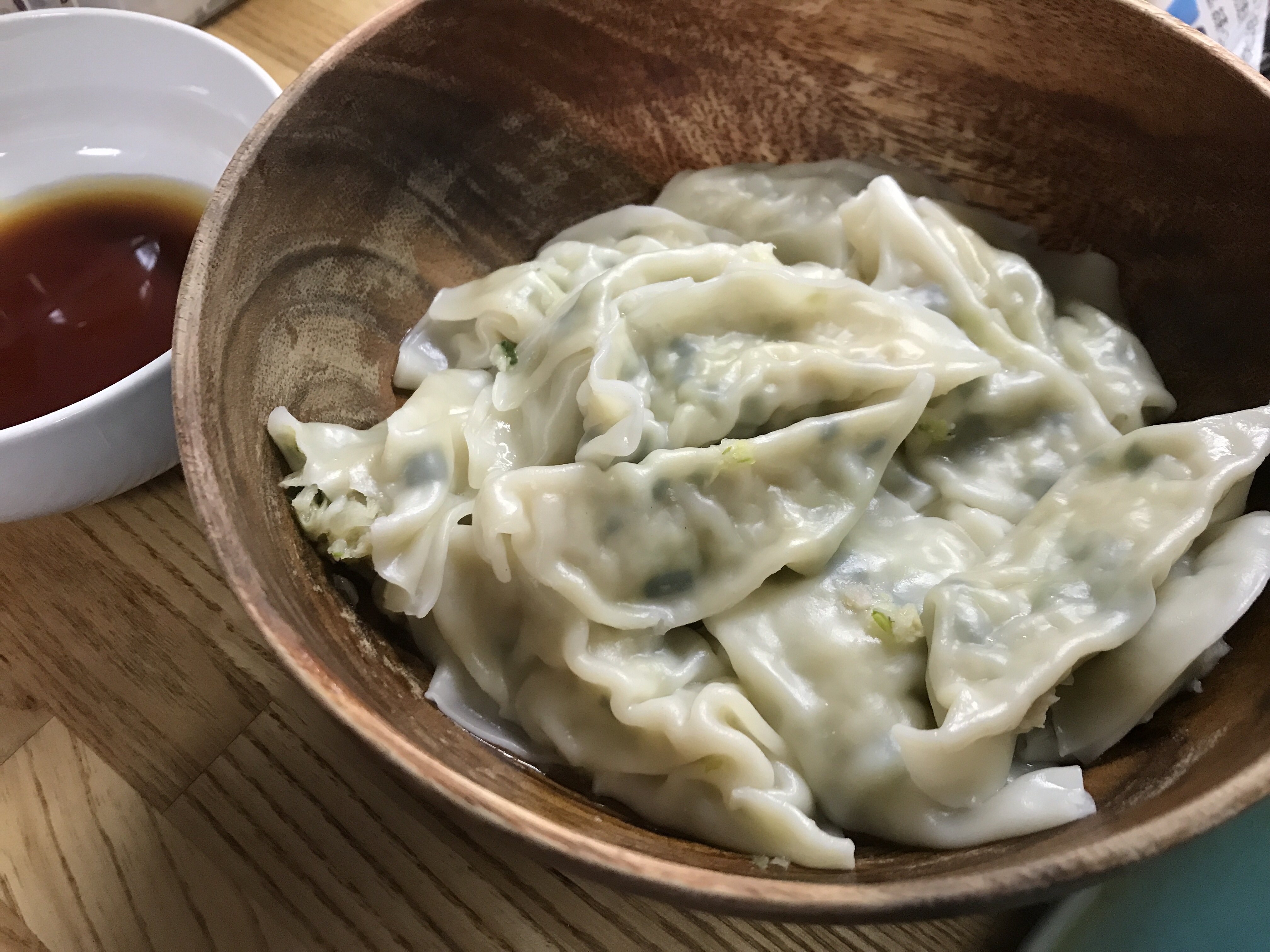 焼き餃子は適量の水で蒸し焼きにした後、油を足して焼き目をつけて完成!