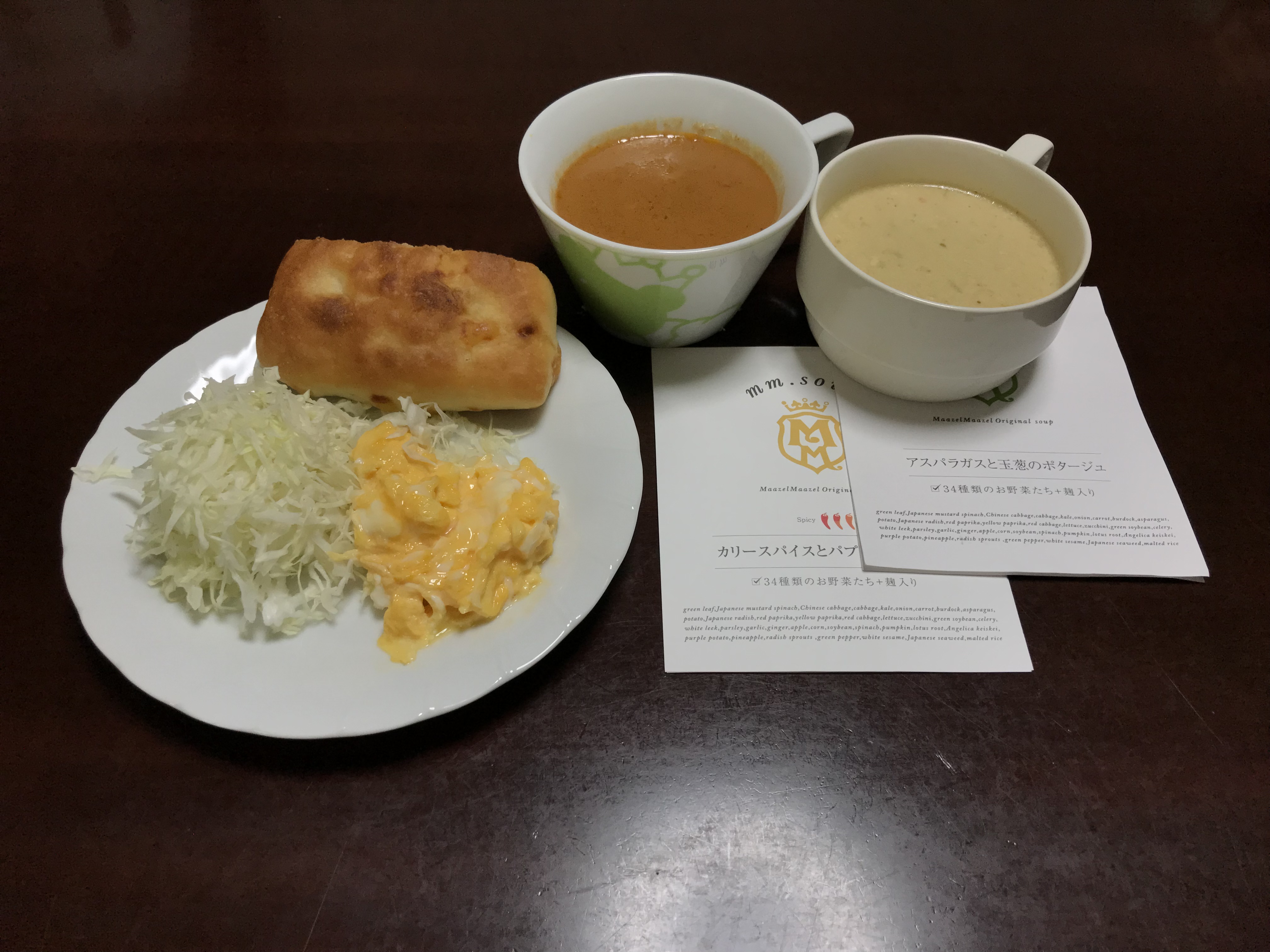 次の日に4種をシェア。メインにもなりそうなカリースパイスとパプリカのスープ、エビとトマトの濃厚スープ、とろーり濃厚かぼちゃのスープ、とうもろこしの贅沢ポタージュをいただきました。カリースパイスとパプリカは、スパイシーマークが付いていましたが、程よくスパイシー。いいアクセントになっていて、ある程度の年のお子さんでも美味しくいただけるかと。エビとトマトは、トマトベースにエビ風味が馴染んでいるけど、しっかりあって、美味しい。かぼちゃは、その名の通り、とろーりとしていて甘みがあって食べ応えもあり、とうもろこしもさらっとしていて、ふわっとした感じもあるのですが、しっかりとうもろこしの甘味も感じられました。全体的に、メインの素材の味と大豆の味が残る気は、しましたが、原材料を見ると、ケールなども入ってましたが、本当に食べやすく、おいしかったです。