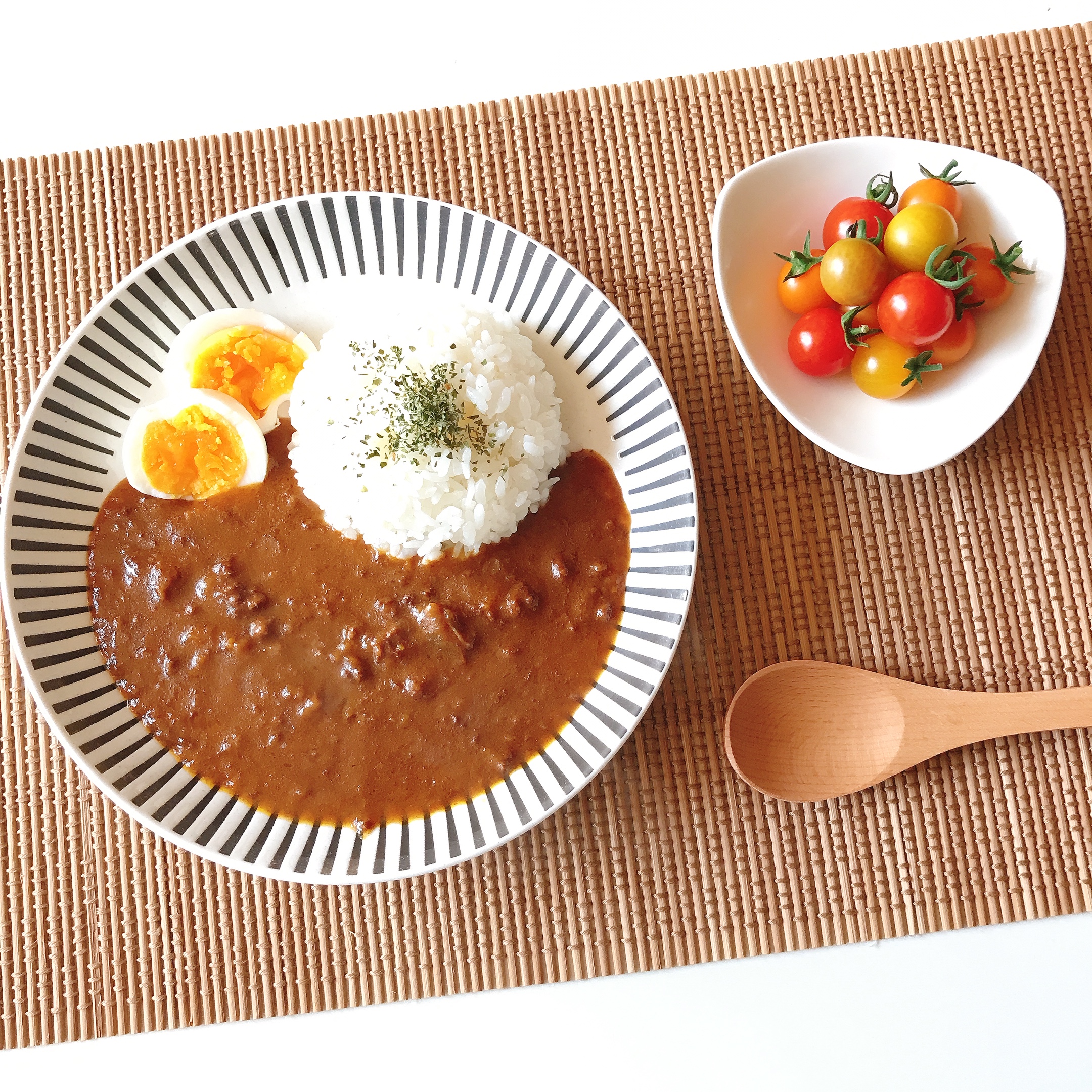 塊肉ではなく、熟成肉の粗挽き肉が使われていますが、「カレー用に厳選した門崎熟成肉(黒毛和牛)」の、煮込んでも型崩れしにない「スネ、ブリスケット、ネックなど、コラーゲンやうま味のもとになるアミノ酸を豊富に含むゼラチン質な部位を指定し」、しかもその量たるや、「内容量の30%も使用した」とのことで、挽肉でありながら肉々しい感じがするのは、これが理由かなと思いました。