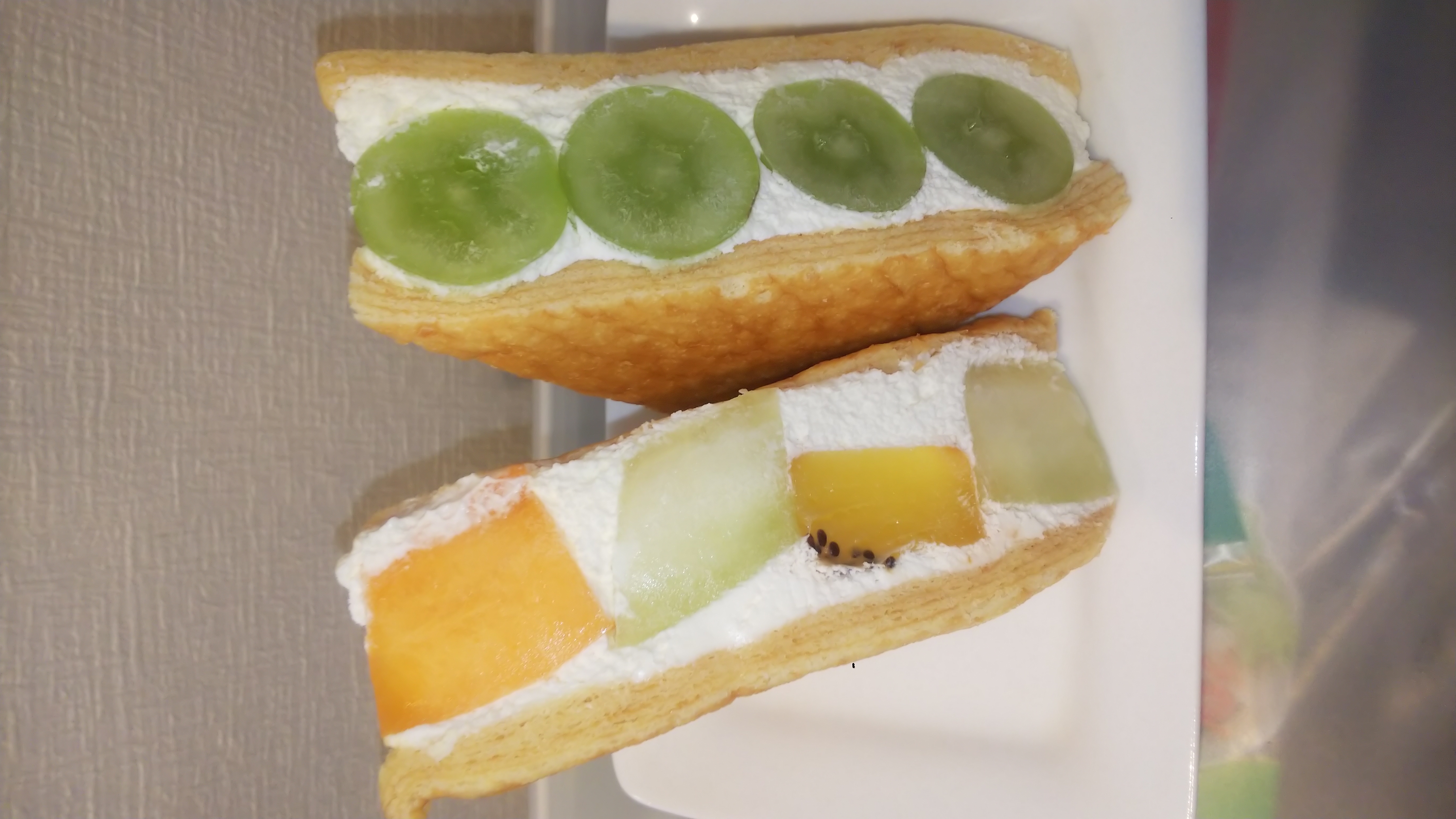 世界初の「バウムクーヘンで作った」フルーツサンドです、ぜひ召し上がりください!