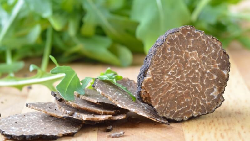 トリュフが香る、ペリグーソース(黒トリュフソース)と一緒にお召し上がりください。
