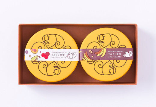 キャラメリゼ風のクルミとドライフルーツを合わせた、クルミのおやつ。ほどよいソフトさと、噛んだときのクルミの香ばしさが、口いっぱいにひろがります。かわいいリスがデザインされた缶に入っていて、ちょっとしたギフトにもおすすめです。