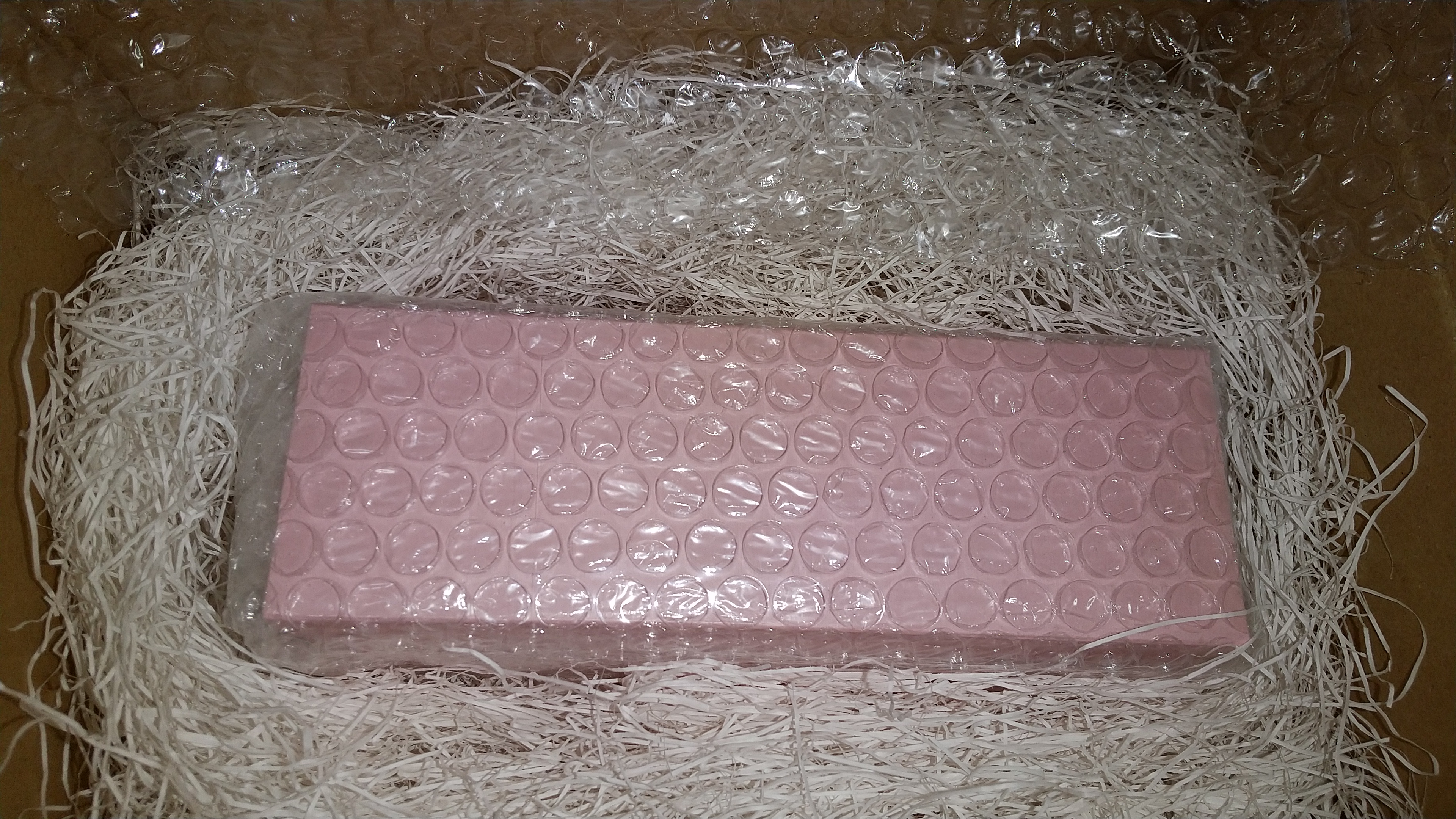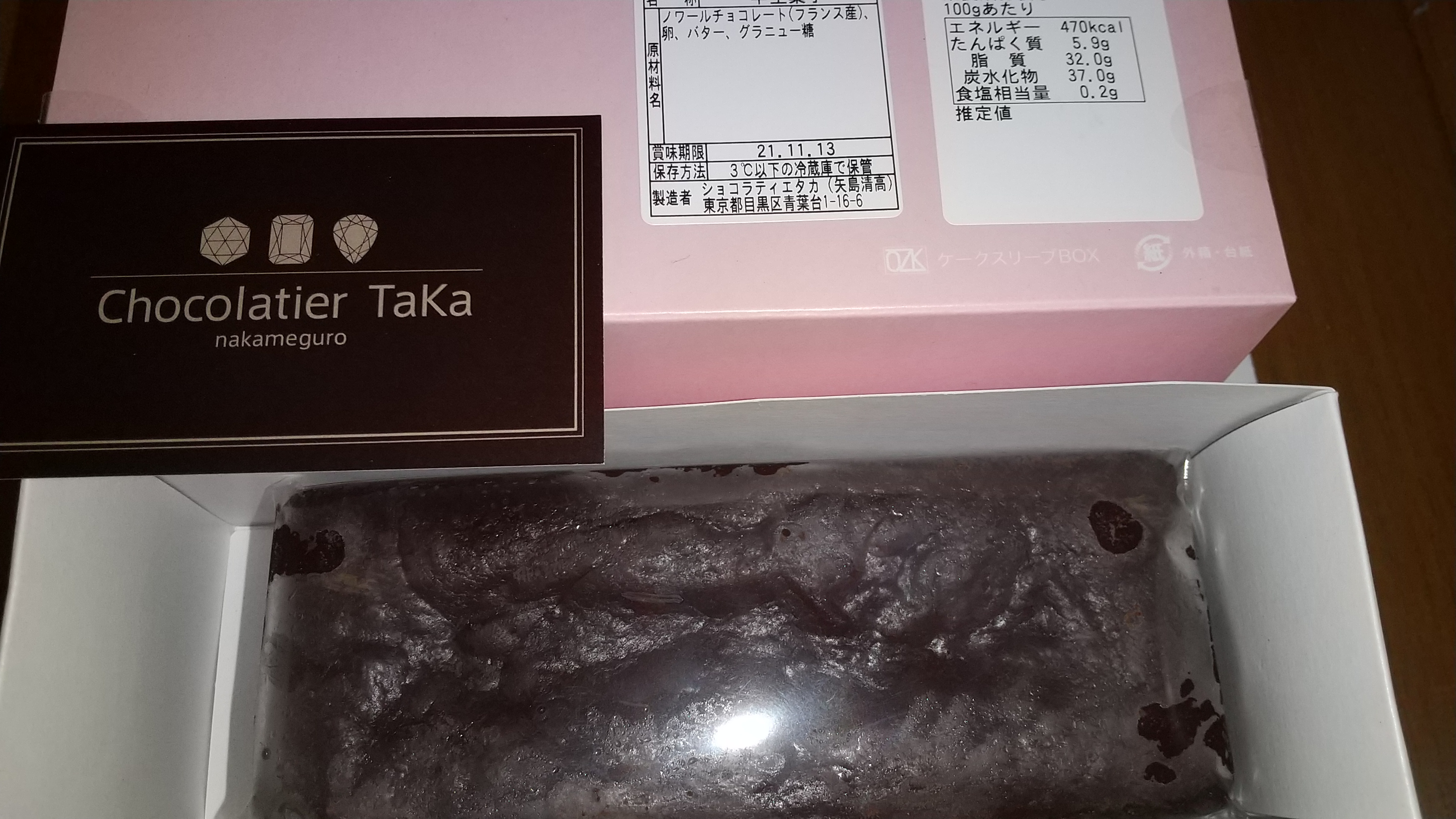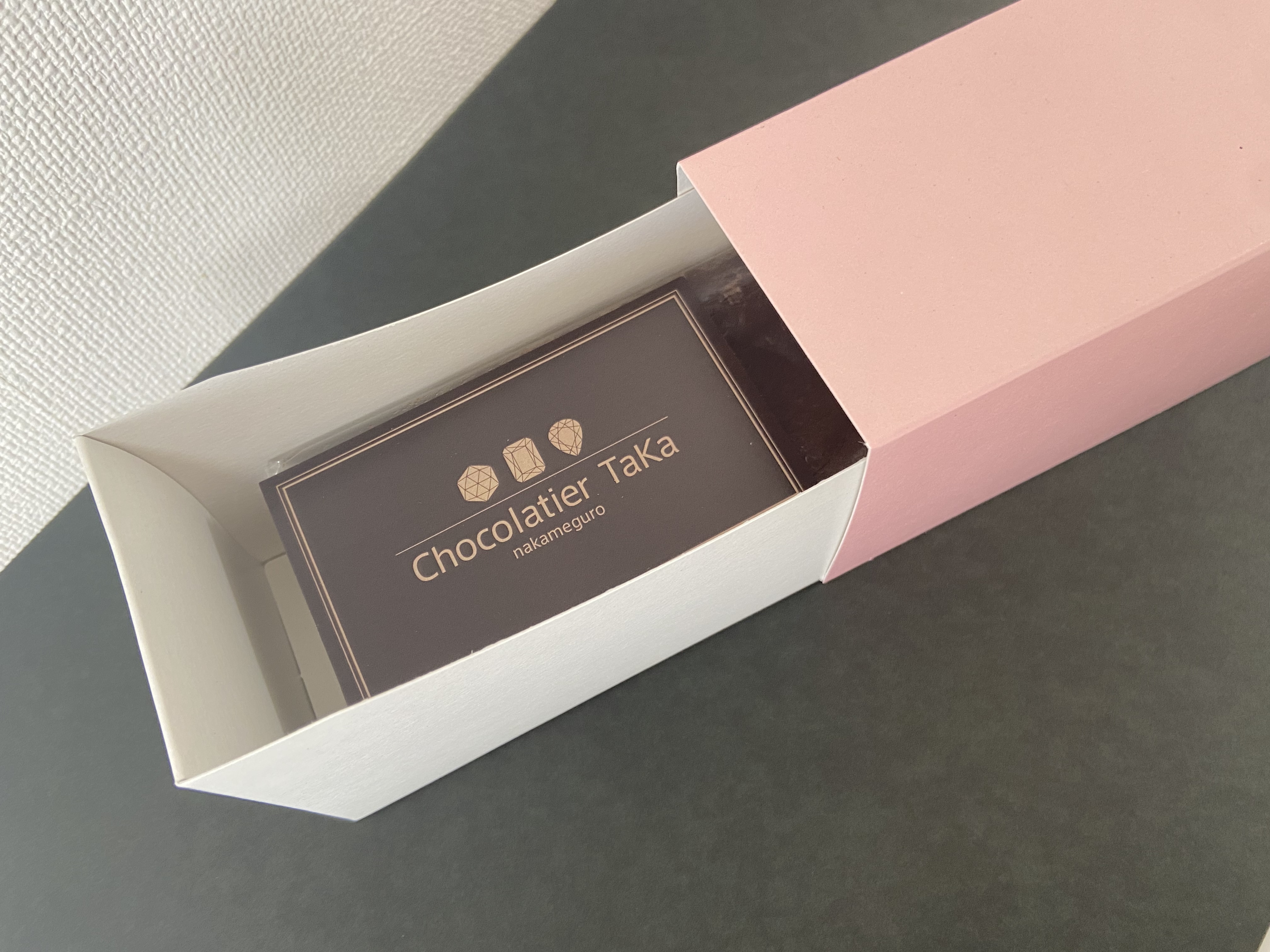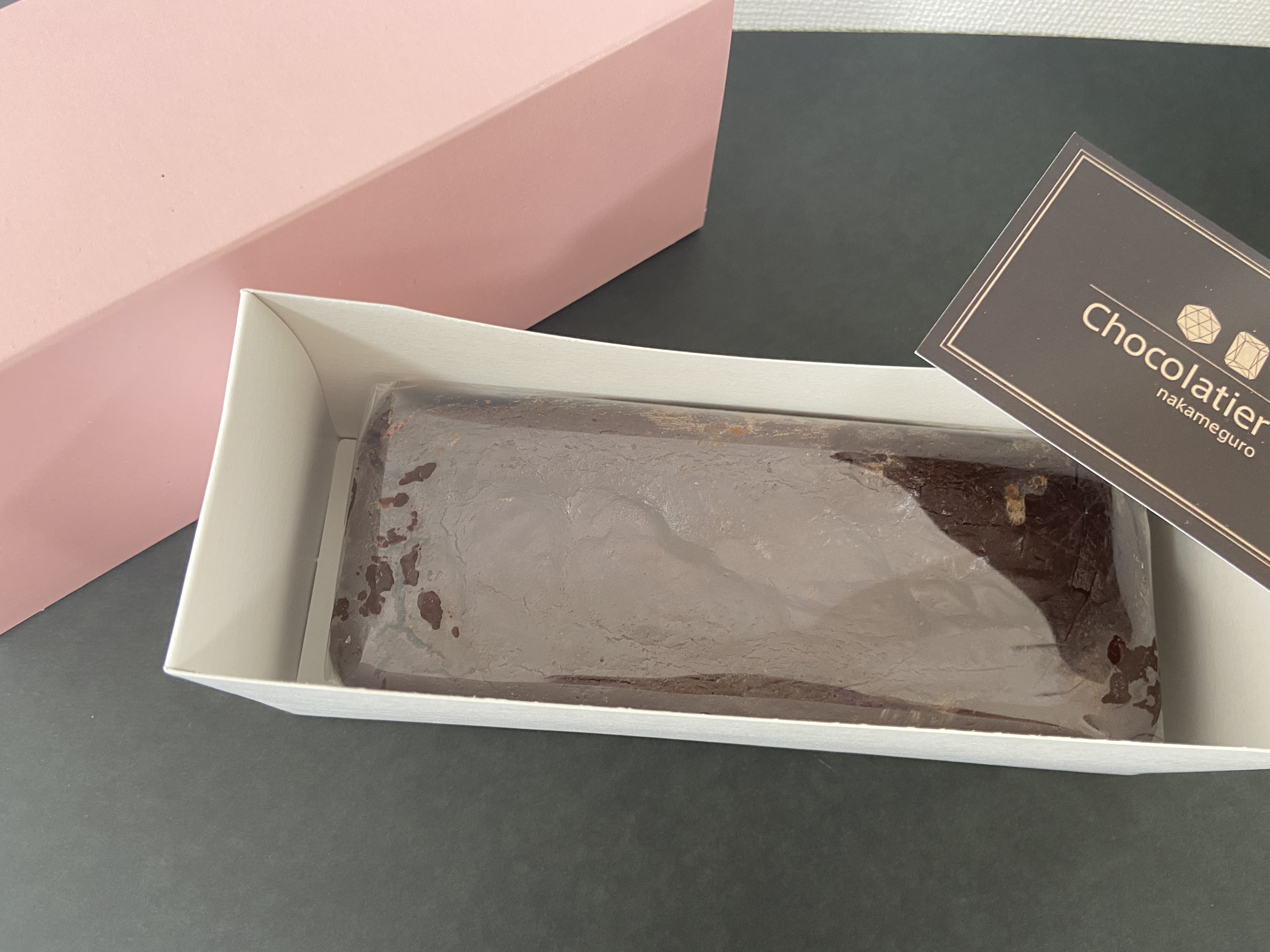 どっしりとした重量感とは対照的なピンクの可愛らしい箱を開けると綺麗なパウンド型のテリーヌショコラがおさまっていました。