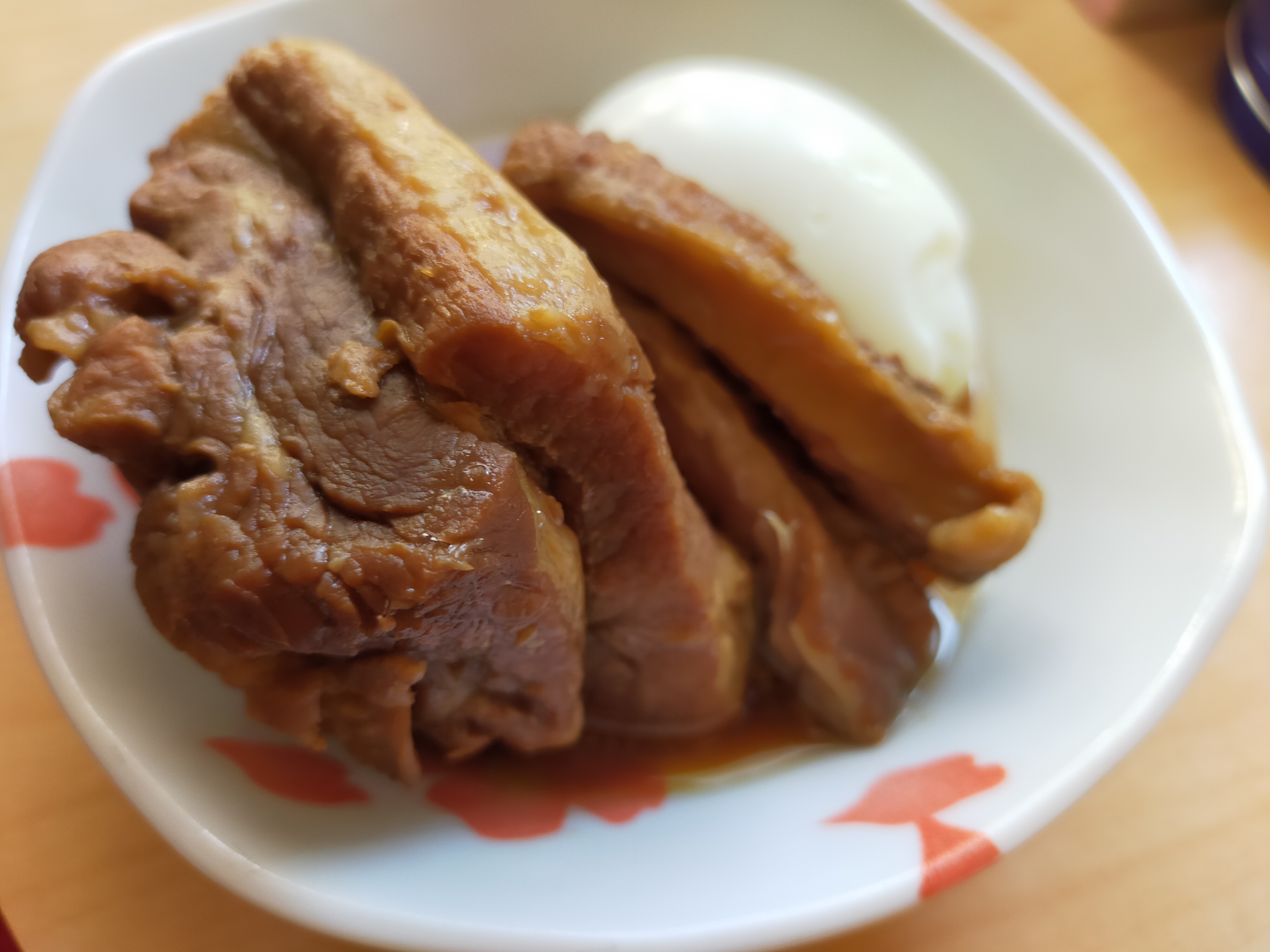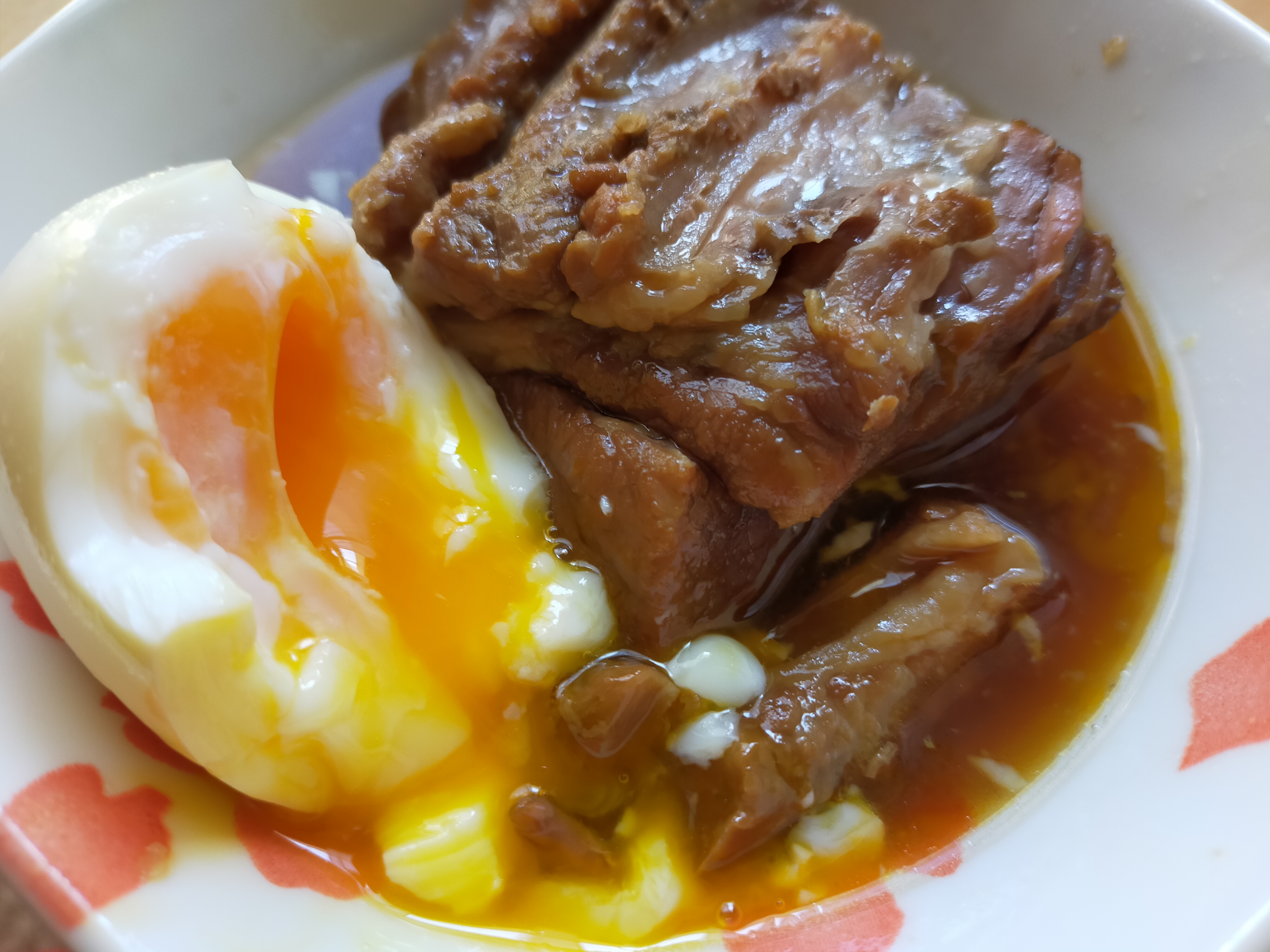 ・温めた角煮をほかほかの白いご飯に乗せて
