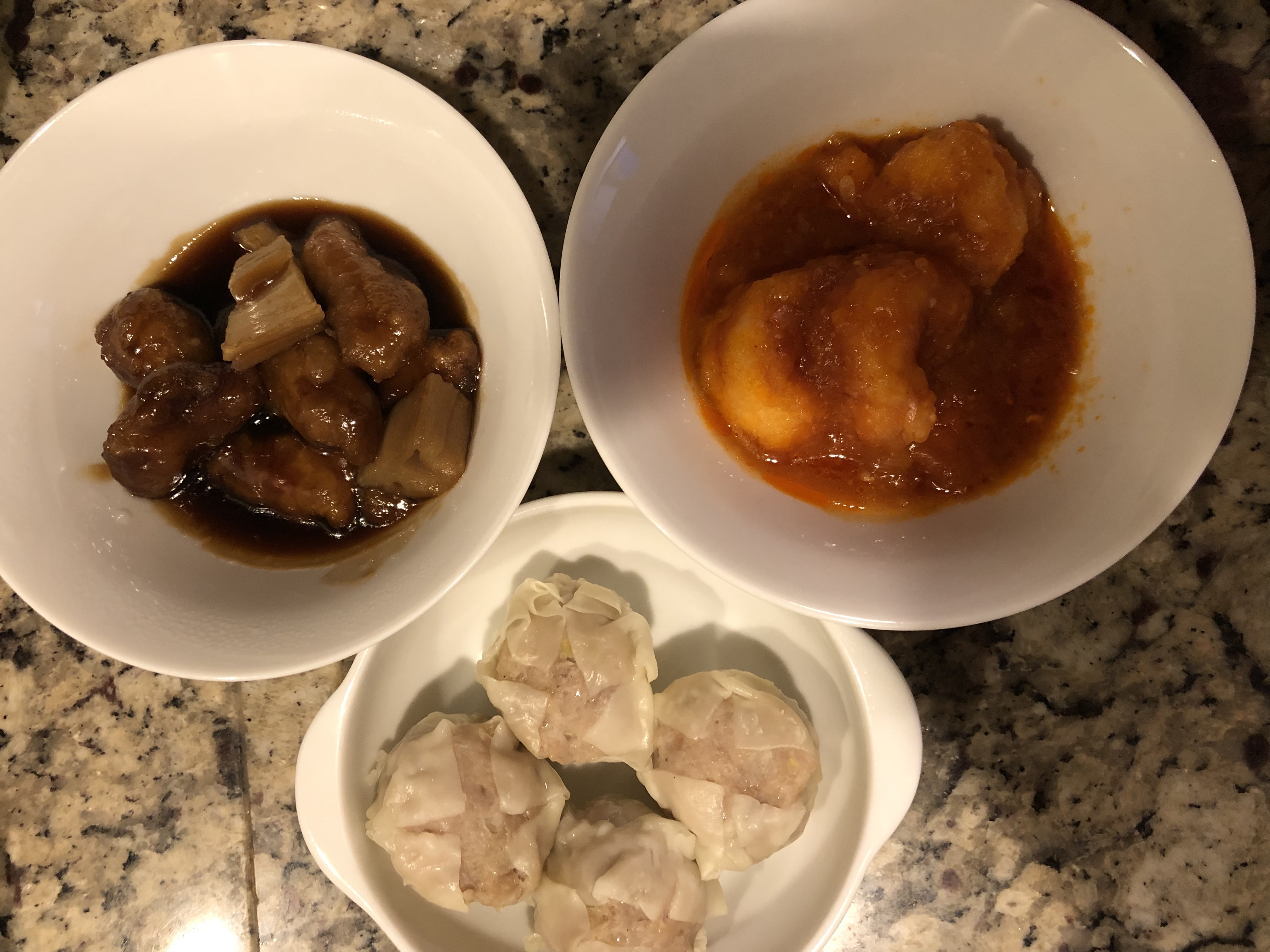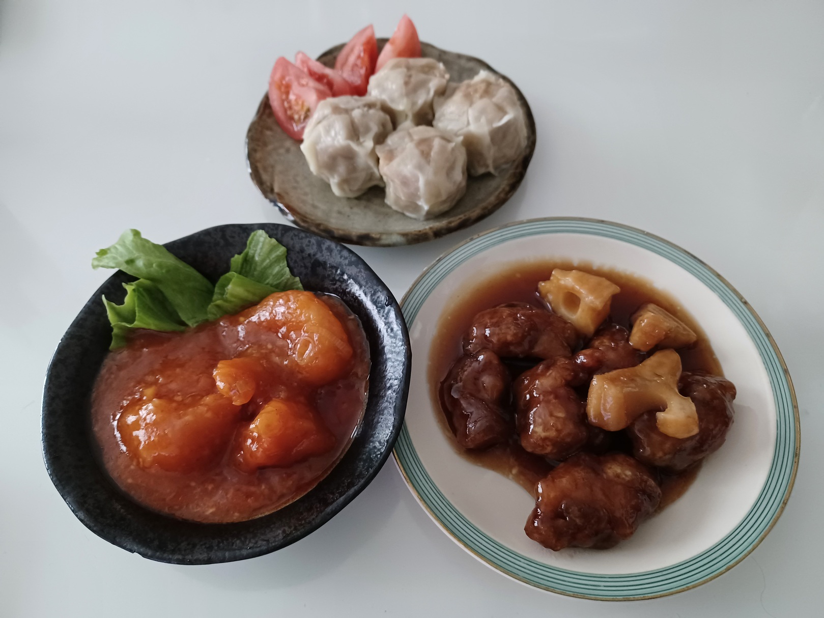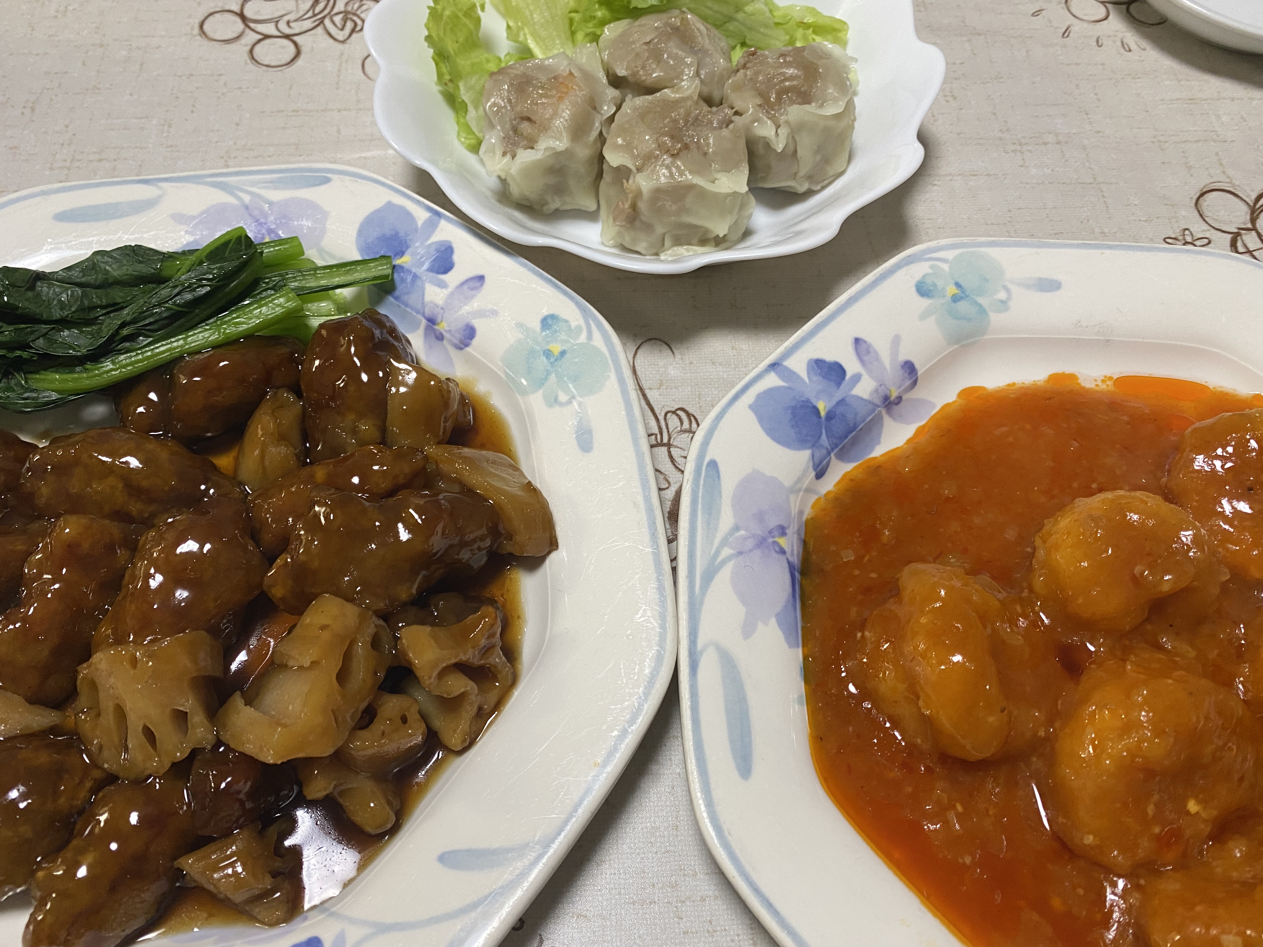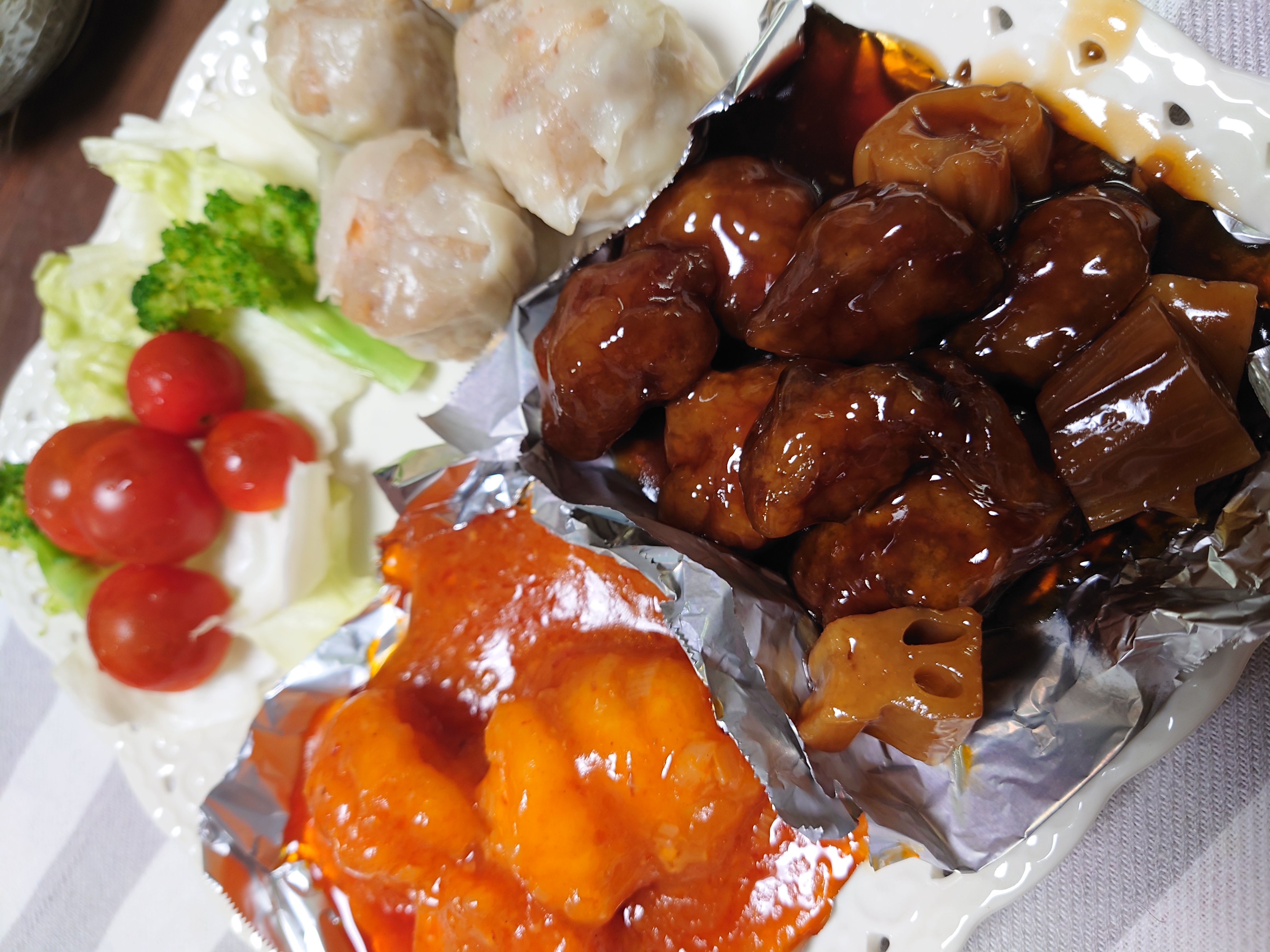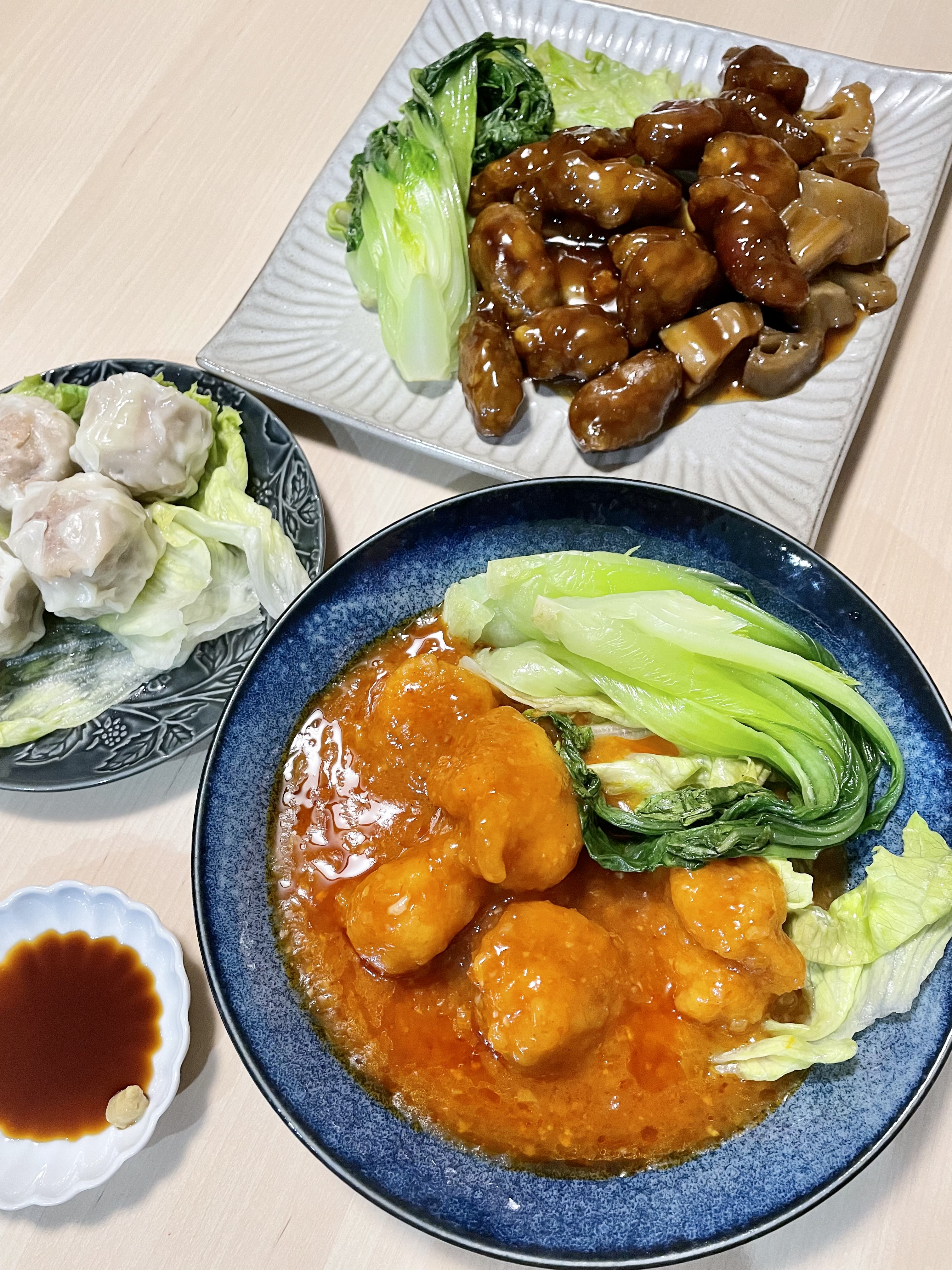 大海老のチリソース煮、特製黒酢の酢豚がそれぞれ2袋特製肉焼売が4個入り1袋です。