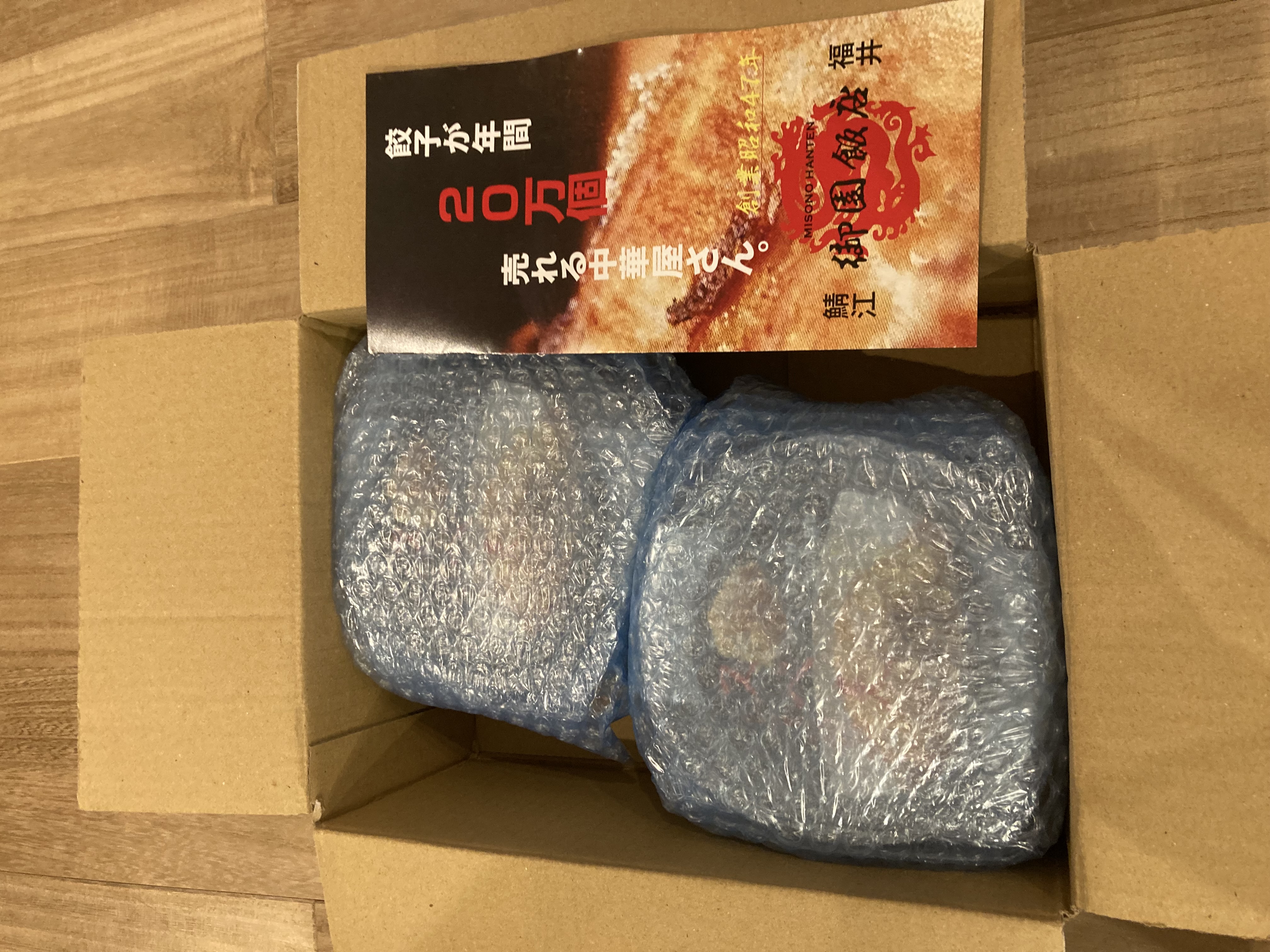 スペ天×2(かに玉あんかけチャーハン)が1つずつプチプチで丁寧に梱包されて入っていました。