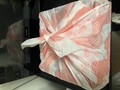 かわいらしい緑色の段ボール、開封するとさらにかわいらしいふろしきに包まれたお重が入っていました。
