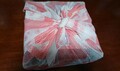 段ボールをあけると白とピンク色の不織布の風呂敷があらわれます。