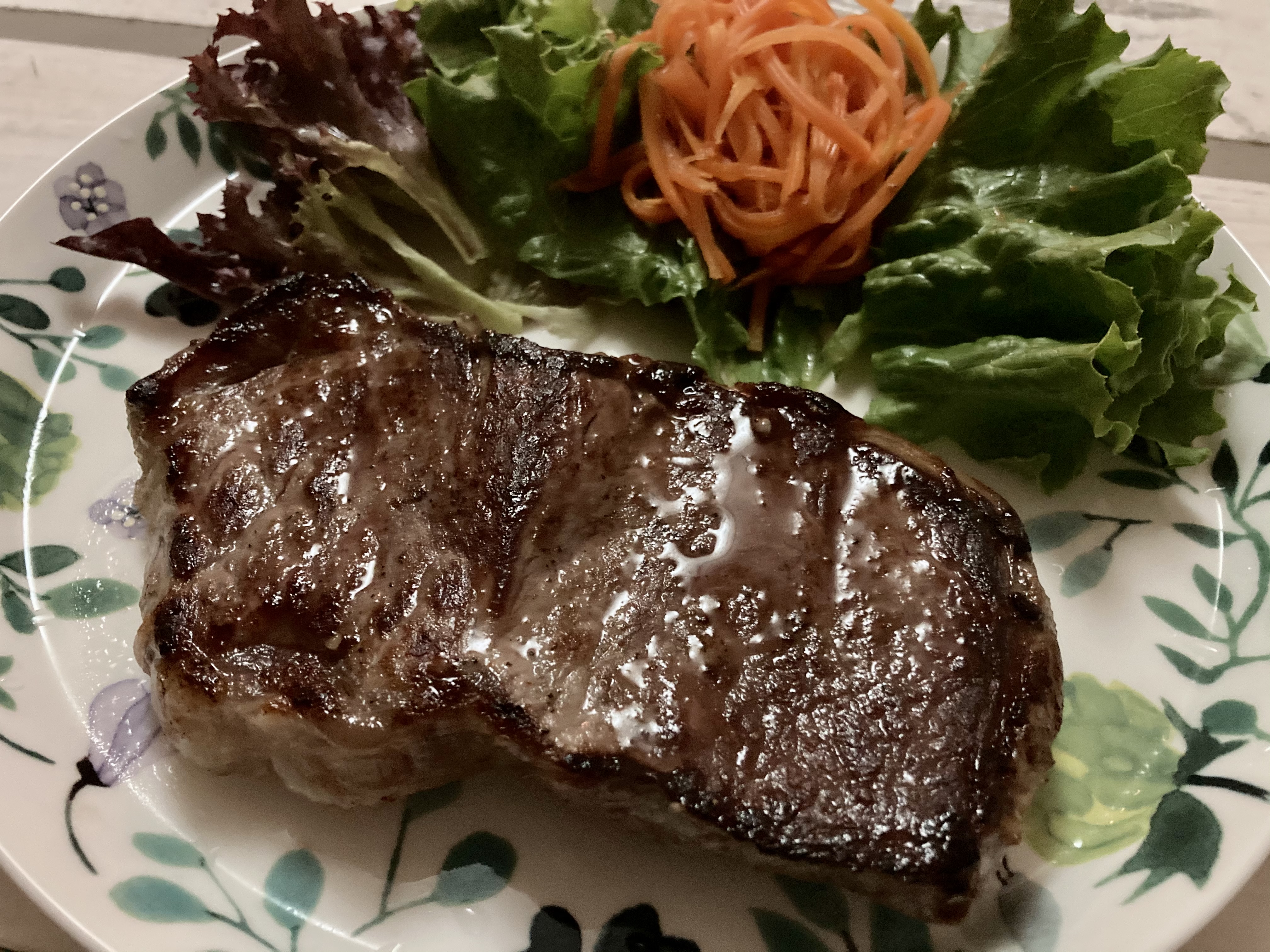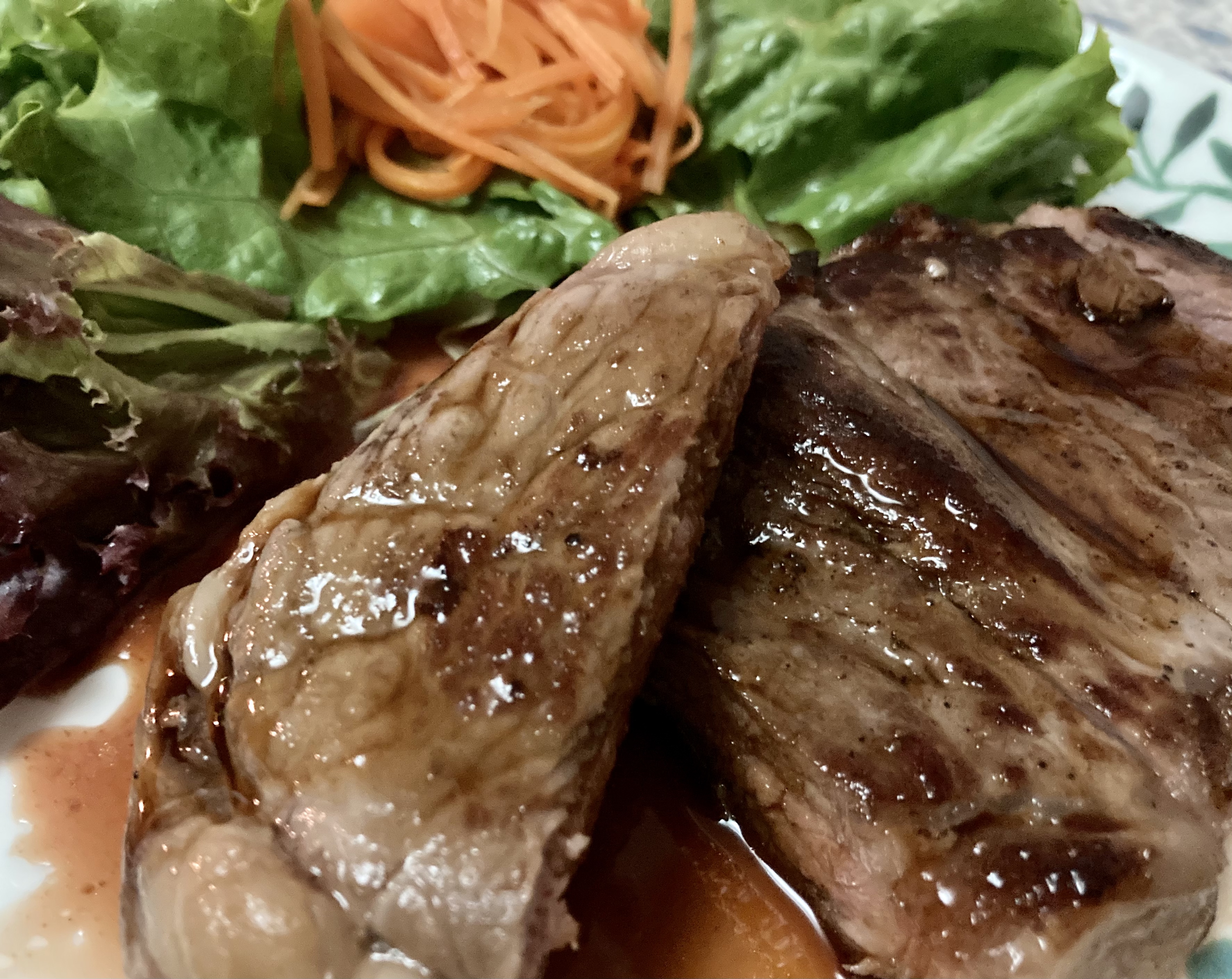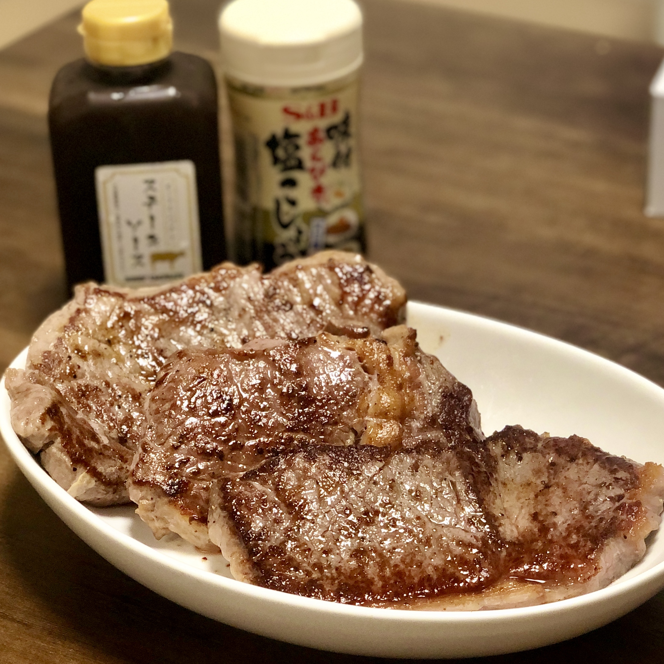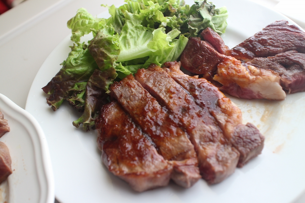 真空パックされており、説明書の解凍方法にならって解凍。ブラックペッパーと塩をさっとふりかけ、片面2分焼き、裏目は1分。