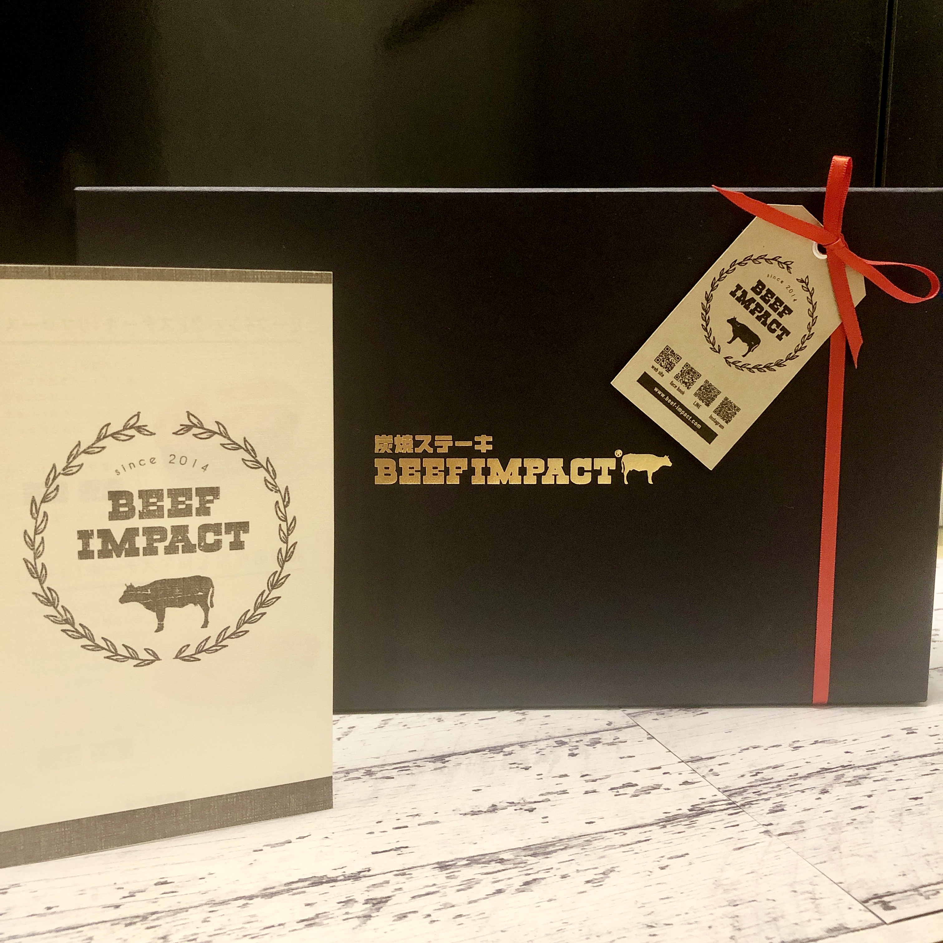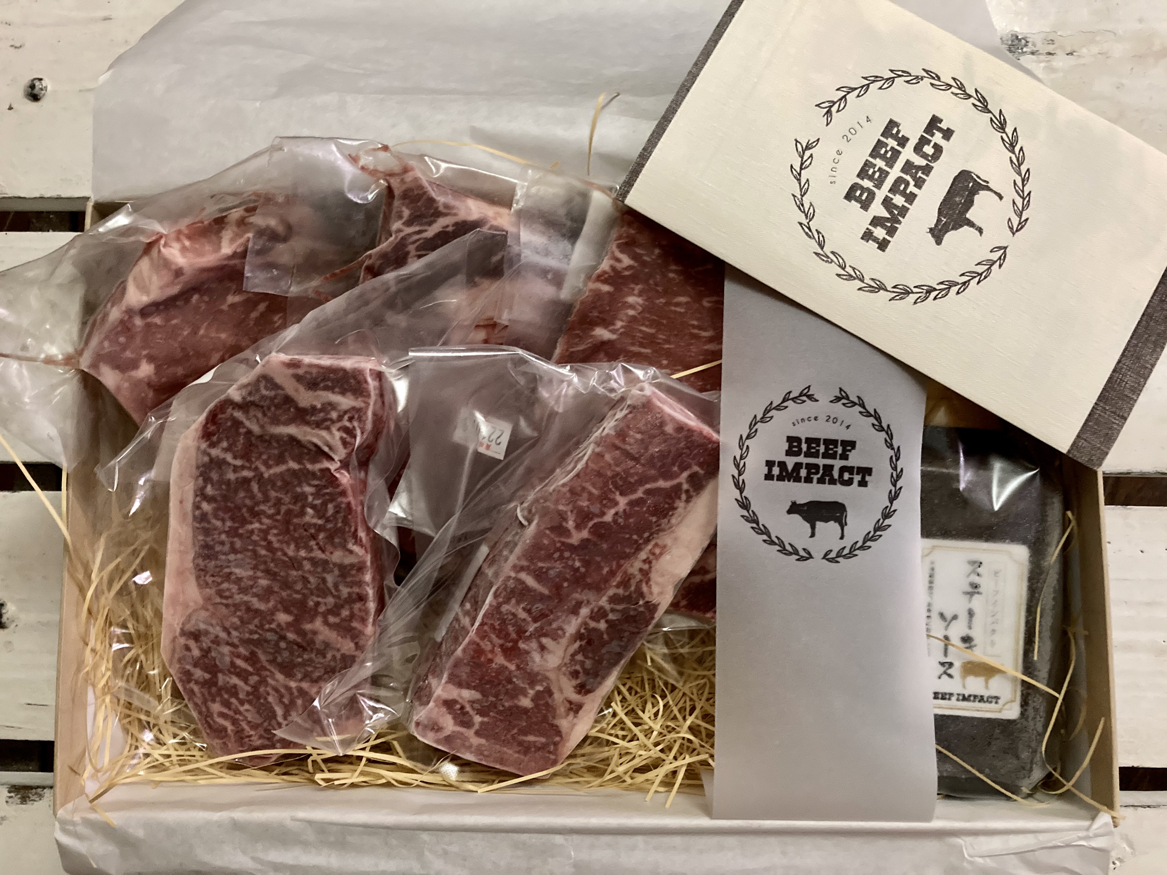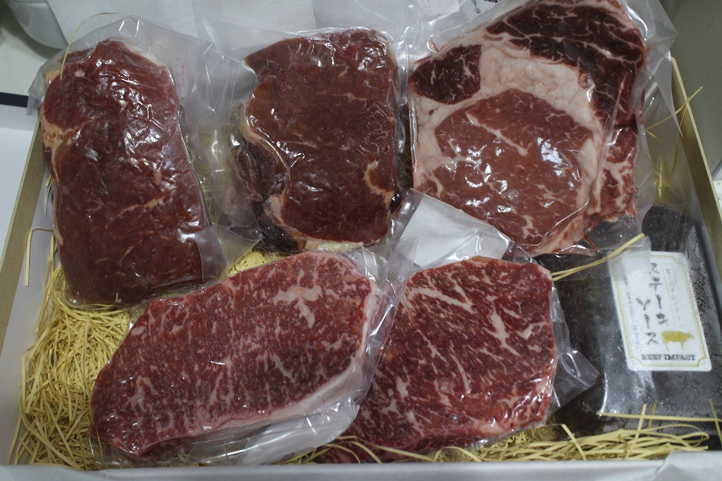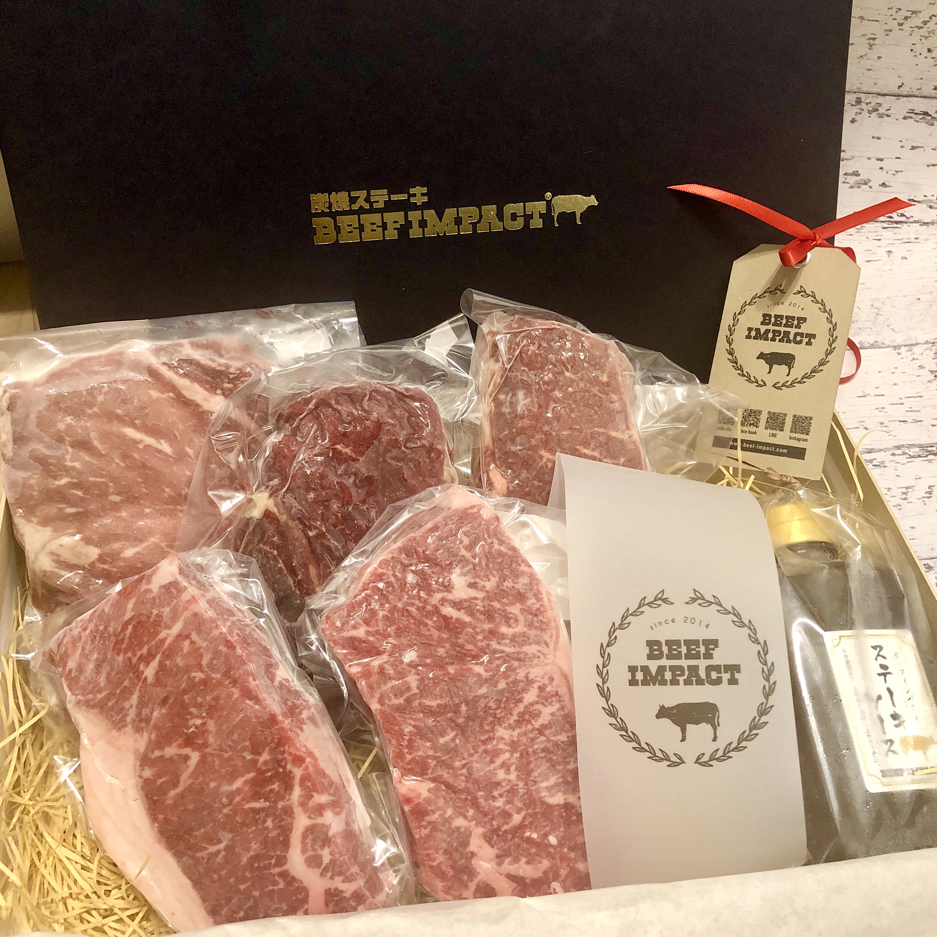 ギフトセットB【ビーフインパクトステーキ200g×3枚、北海道産黒毛和牛ステーキ150g×2枚】