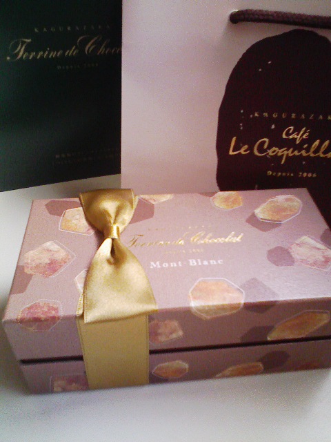 新作のテリーヌドゥショコラモンブランはかわいいパッケージの箱に入っています。小さい紙の手提げ袋も一緒に梱包されていてプレゼントととして渡す時にも良いですね。