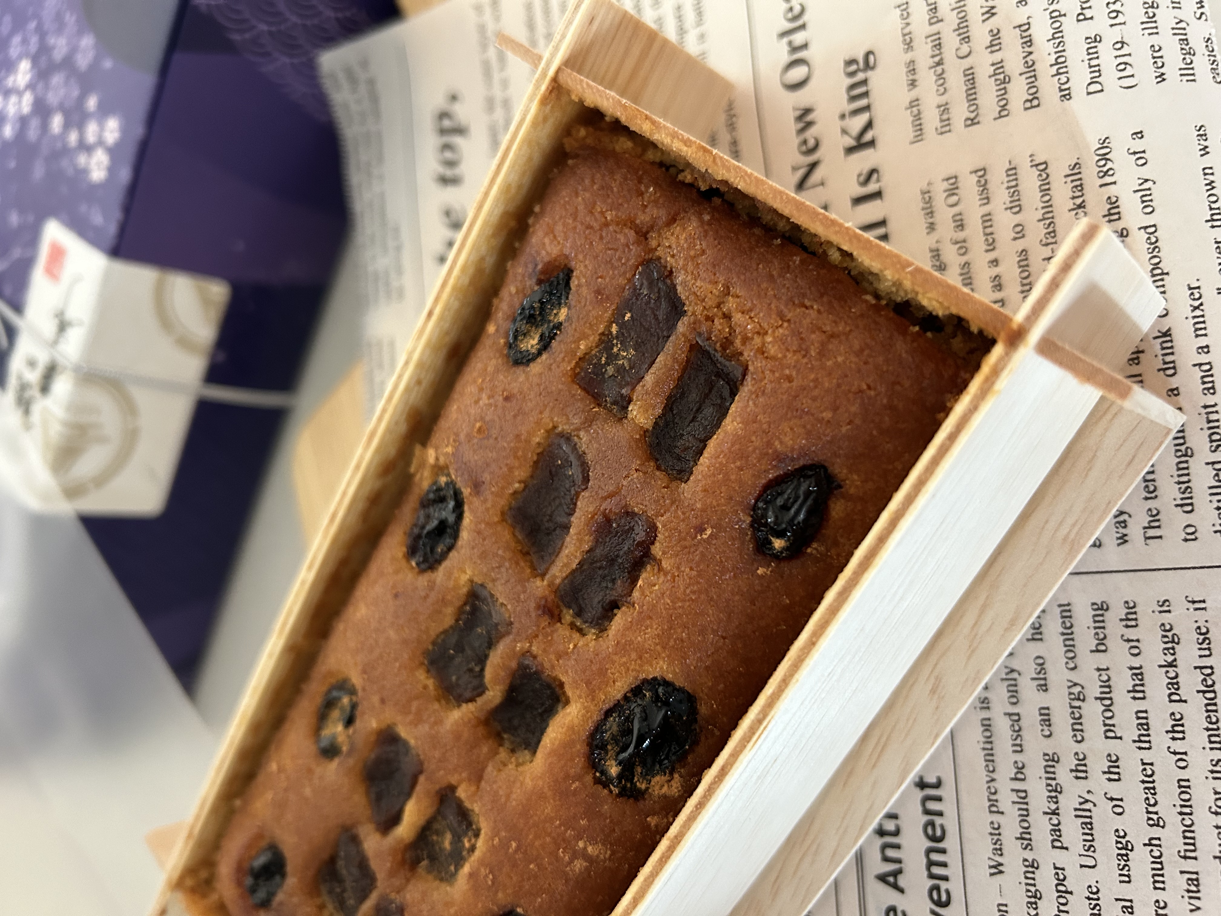 この味と質感を実現するために、通常用いられる金属製の型ではなく、特製の木箱で焼き上げております。