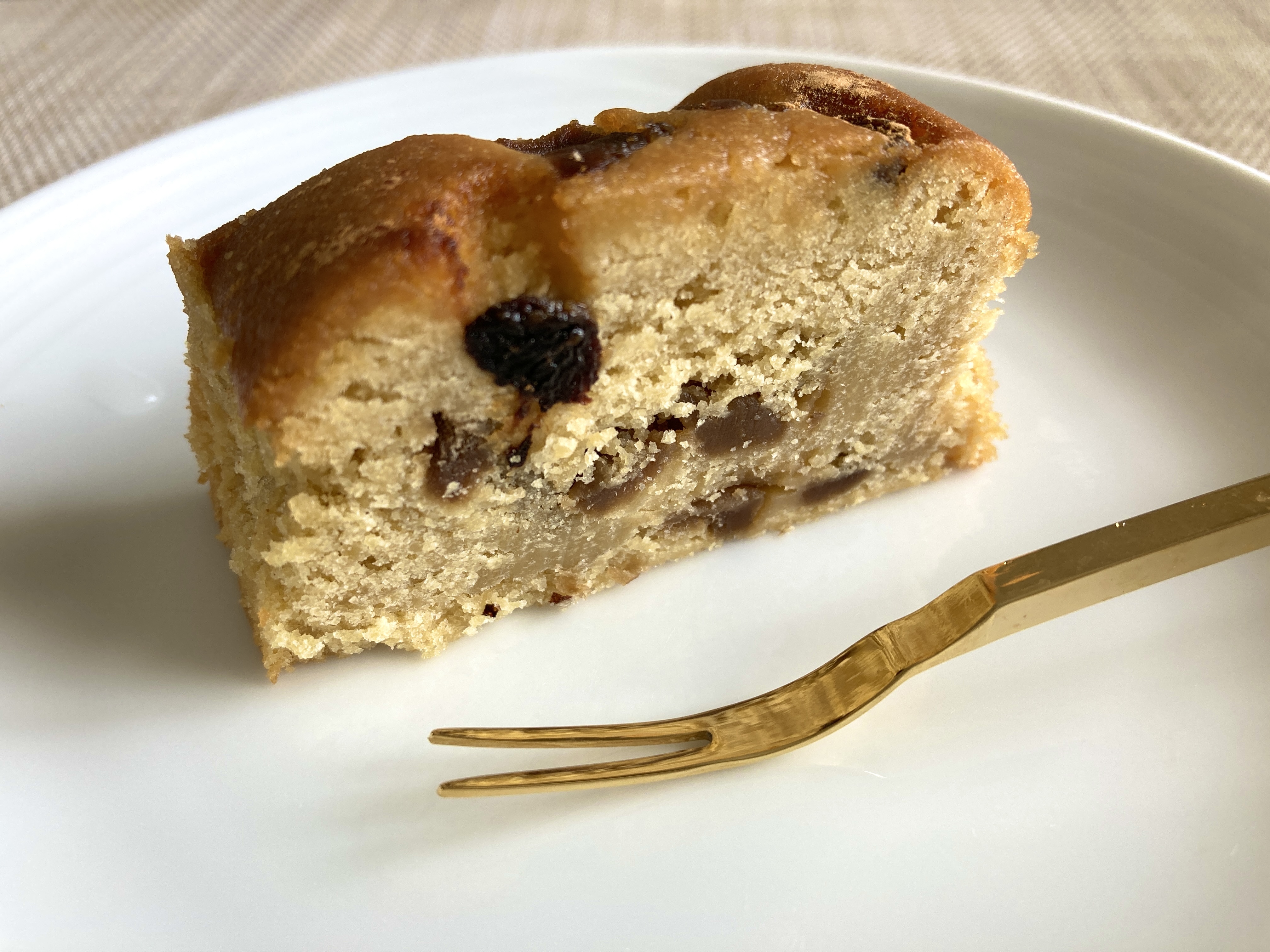 蜜芋が練り込まれた生地はしっとりしており、りんごとレーズンとの相性抜群です。りんごやレーズンそしてシナモンとのバランスが絶妙であとひく美味しさです。黒糖で煮詰めたというりんごの食感もよく、その甘酸っぱさと蜜芋のやさしい甘さがとてもあいます。濃厚な味わいに大満足です。