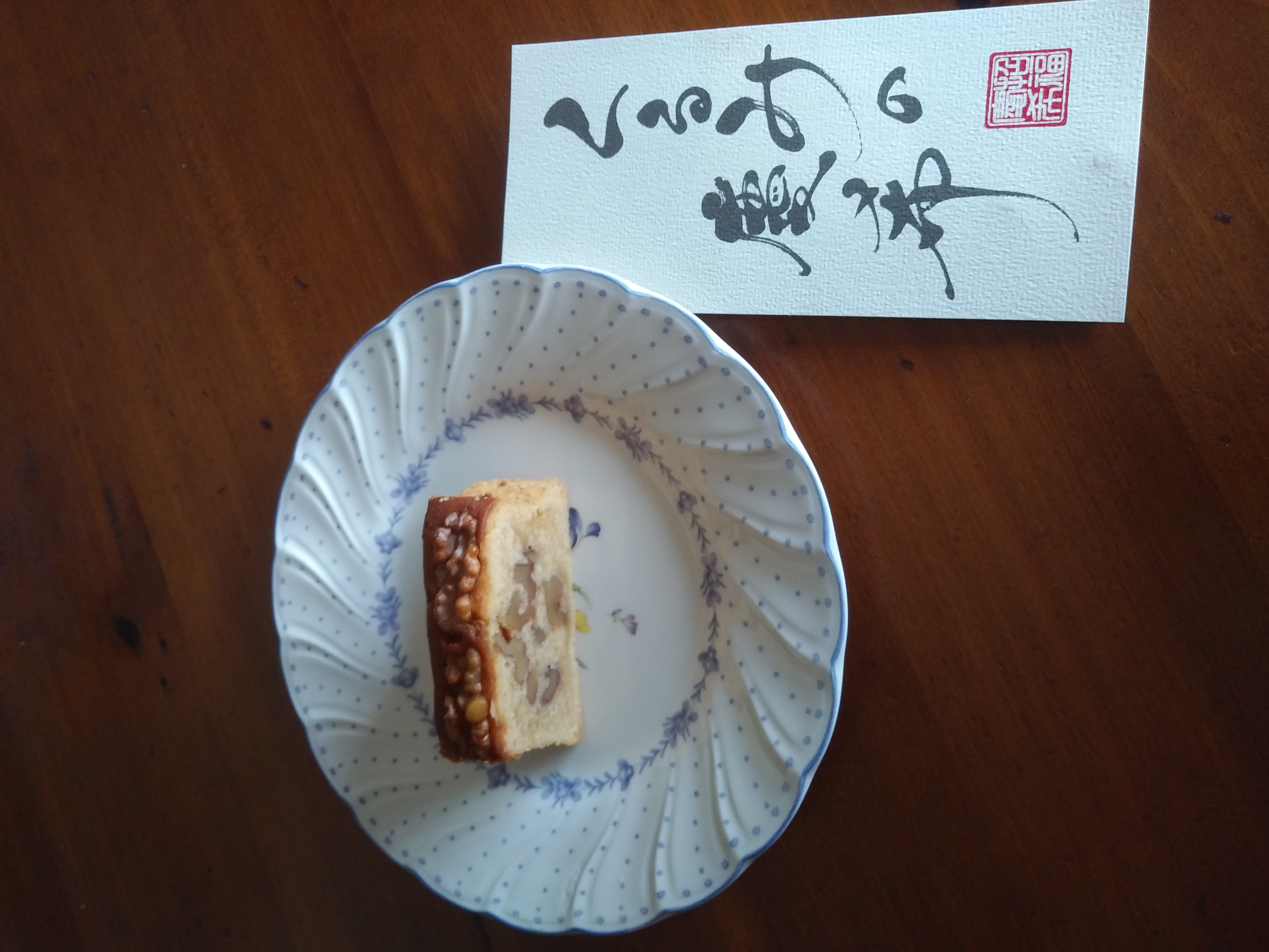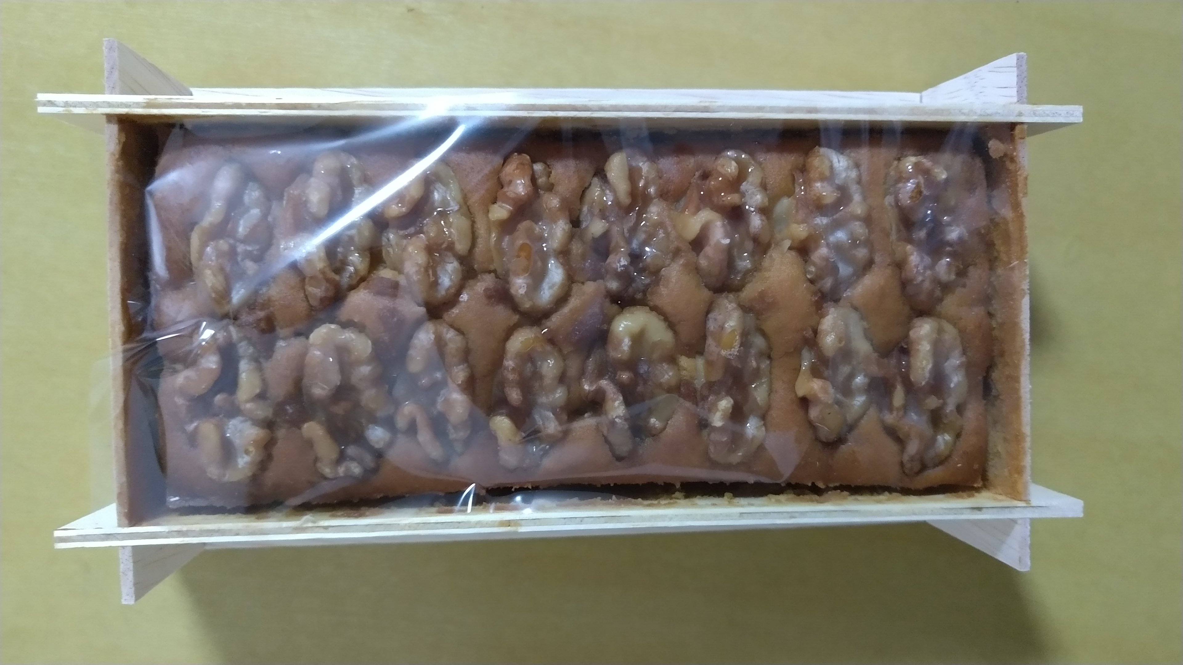 部分的にはスイートポテトのパウンドケーキを食べているような感覚にもなりますが、ほんとにたくさんのクルミが入っており、そのクルミがほんのりした塩味もしていて、とても良いバランスのお茶うけだと思いました。