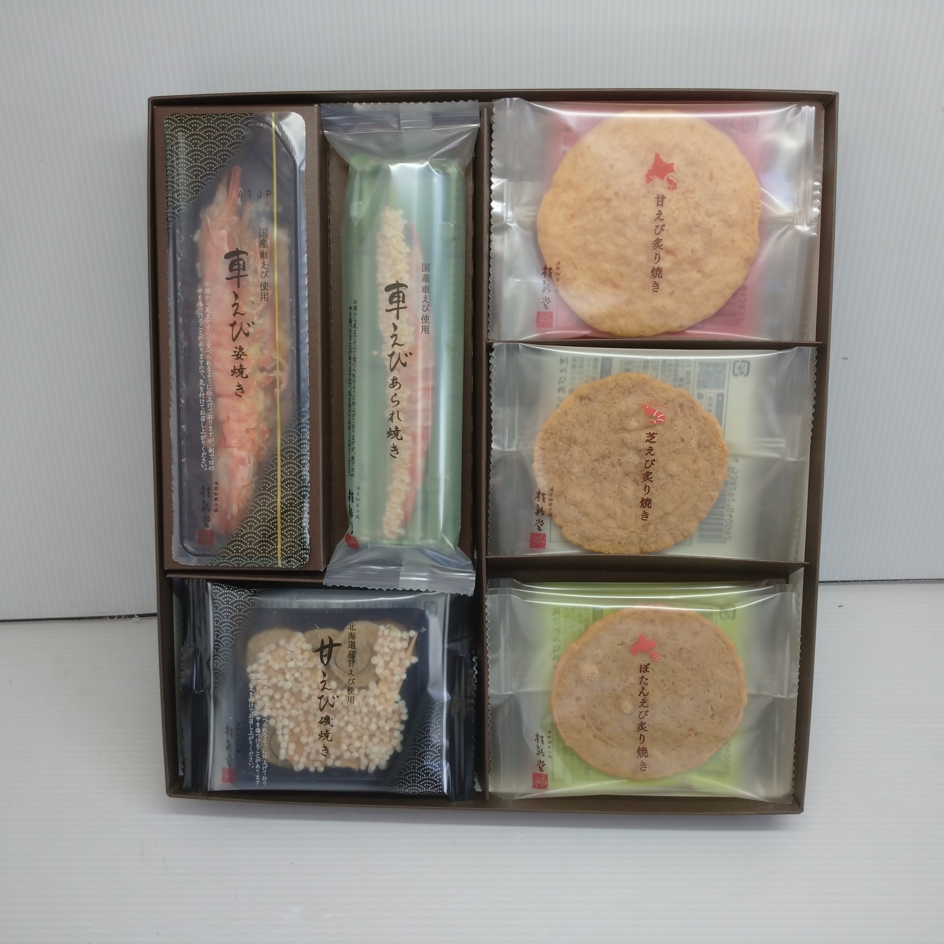 国産の車えびや芝えび、赤えび、北海道産の甘えび、ぼたんえびの5種類のえびをそれぞれの特徴を引き出し、独自の製法で焼き上げた「海老せんべい」のセットです。その名の通り、えびの姿そのままに焼き上げた「車えび姿焼き」や一尾まるごとの「車えびあられ焼き」、新製法によりこれまでよりもえびの濃厚な旨みが楽しめる「炙り焼き」など7種類詰合せです。大切な人や特別な日の贈り物にもおすすめです。
