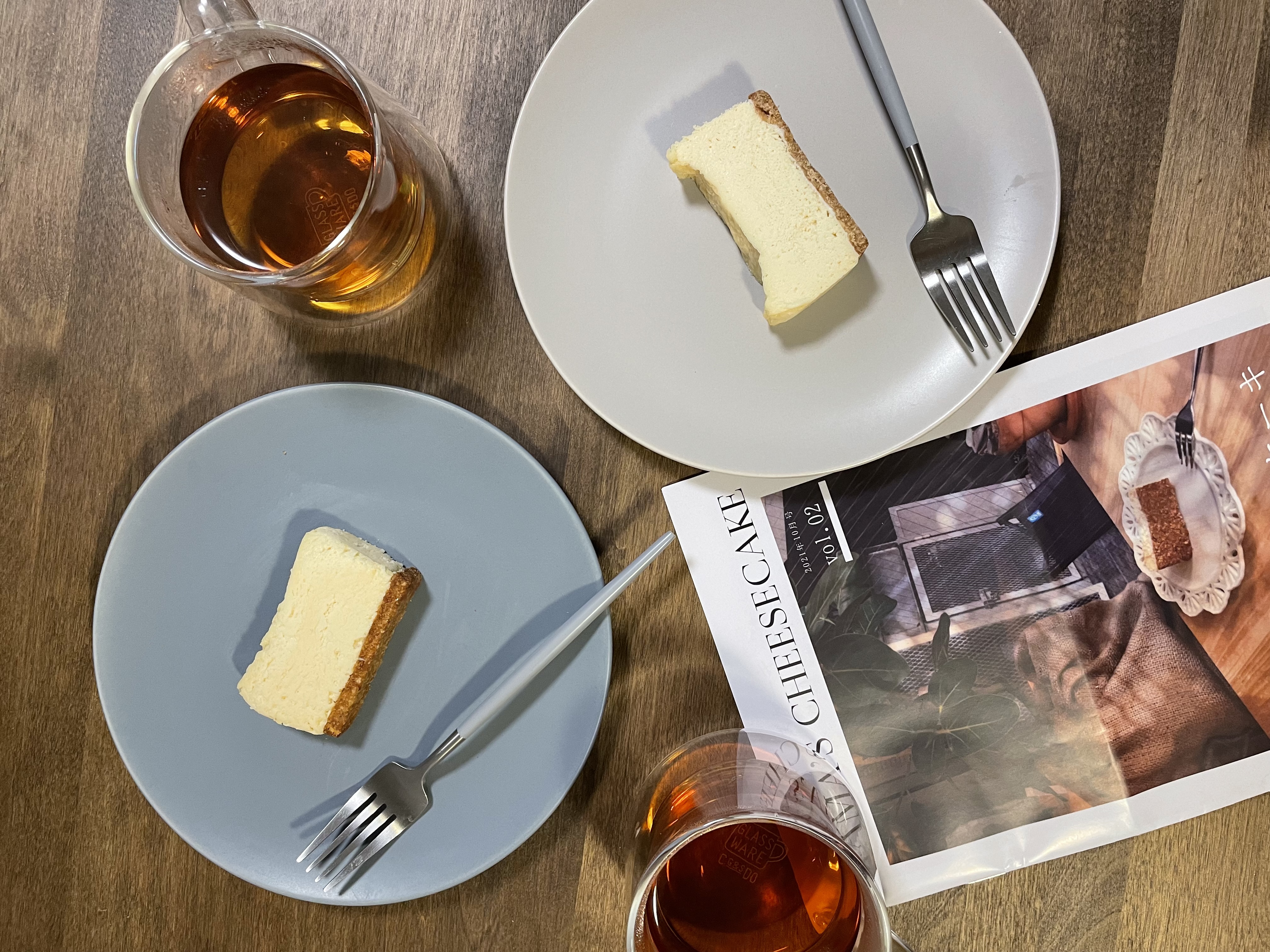 滑らかな食感が特徴の「ベイクドチーズケーキ」です。なめらかでクリーミーなクリームチーズとサワークリームをメインに、生クリームを使用し、よりなめらかに仕上げ、とろける食感と口どけの良さにこだわった「チーズケーキ」です。素材の「無駄」を省き、レモンや香料は不使用。アーモンドを加えたクッキー生地のさくさく感がアクセント。異なる食感のハーモニーを楽しめます。