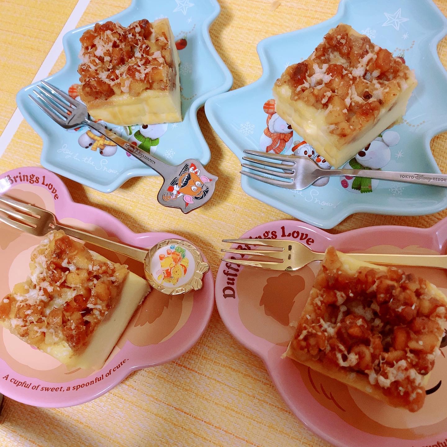 まずはチーズケーキだけで一口頂いてみると、チーズの旨みとコクがギュッと凝縮したような味わいなのにあっさりと食べやすく、甘さも控えめなのでチーズ本来の味わいをじっくりと楽しめます。クセがなく食べやすいフランス産クリームチーズのキリに、オランダ産ゴーダチーズを絶妙なバランスで配合しているので、奥深く濃厚でありながら爽やかな後味です。シュトロイゼルとクルミも一緒に頂くと、はちみつのやさしい甘みとクルミの香ばしい風味が口いっぱいに広がり、一口でも心満たされるようなリッチな味わいです。しっとりとキメが詰まったチーズケーキの滑らかな口どけに、クルミのザクザク感、シュトロイゼルの軽い歯触りがアクセントになり、食感のコントラストが楽しめます。仕上げにゴーダチーズを振りかけて焼き上げている点も、細部にまでこだわっているなぁと感じますね。そのままで十分おいしいですが、好みではちみつをかけるとチーズの塩味とはちみつのまろやかな甘みがお互いを引き立て、一層濃厚で違った表情を楽しめそうです。
