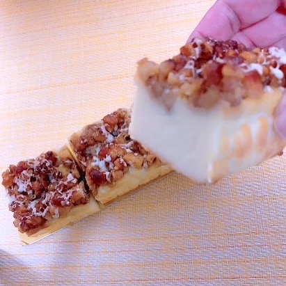 甘さ控えめのしっかりと焼き上げたベイクドチーズケーキにクルミとシュトロゼルの食感がアクセントになり、お好みでハチミツをかけて頂くとチーズの塩味とハチミツの香り甘みが相まってより一層美味しく召し上がれます。