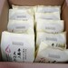 指定の日時通り常温で届きました。段ボールを開けると箱いっぱいにクリーム色の袋に入ったセットが10個入っています。1つずつが大きく筆文字で手延べえびたまめんと書かれていて高級感があります。袋を開けると麵粉末スープフリーズドライの具材が分かれて入っています。器に順番に入れて熱湯を450ml注いでラップをし4分待つだけです。