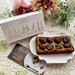 スイートポテトのさつま芋を栗に代えたマロン好きの為の「マロンスイーツ」です。熊本県産和栗の実の風味と栗生地のほんのりした甘さがたまりません。合わせる素材にもこだわり、色彩やかな卵黄が特徴の「丹波産 赤彩卵」や、クリーミーなコクとあっさりした味わいのカルピス(株)バターを使用。栗本来の味わいを引き立てています。それぞれを生かす黄金比率を追及してできた商品。熟練の職人が見極め、目視で確認しながら焼くことで、しっとりなめらかな食感を作り出しています。