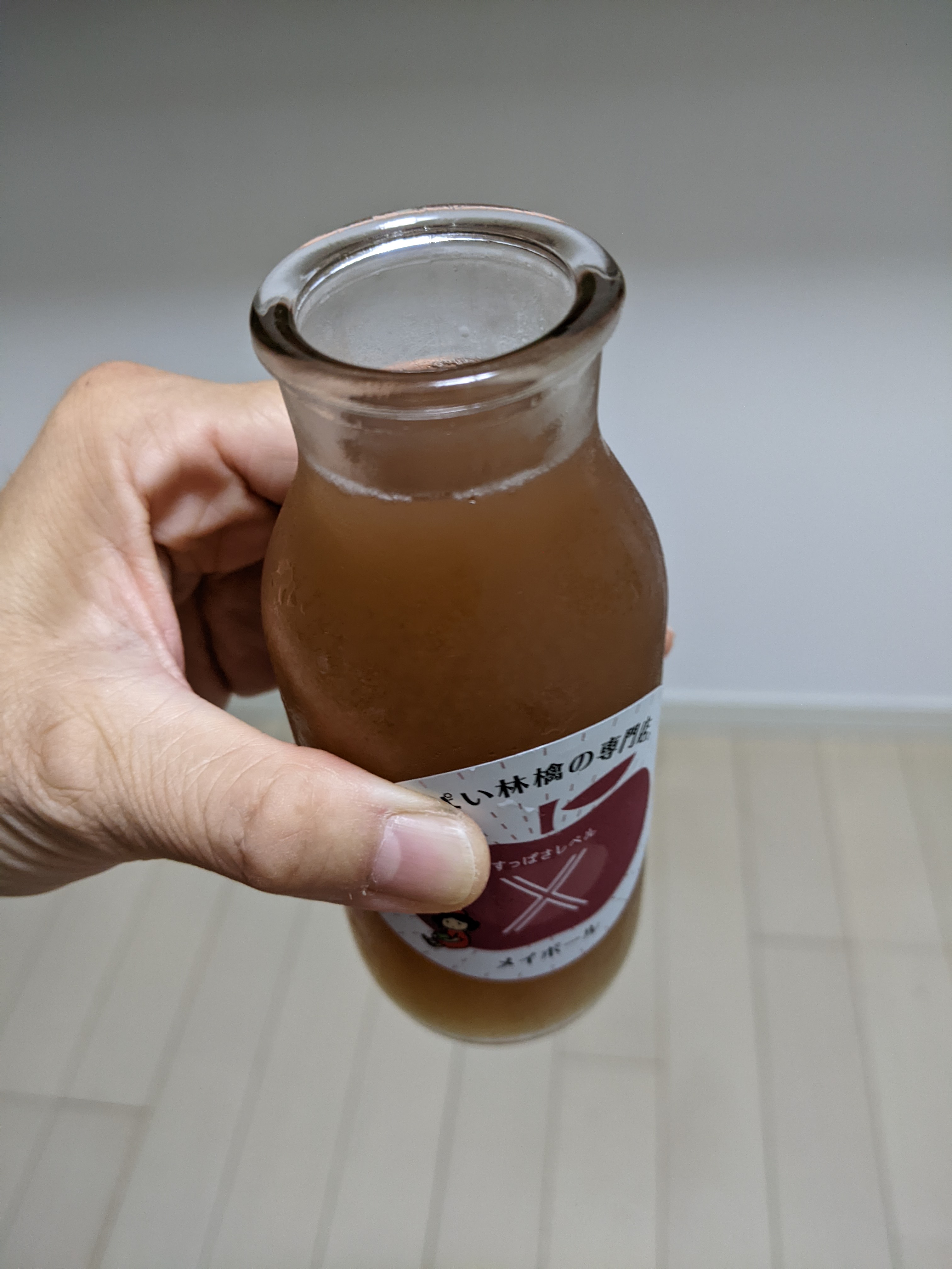 限りなくレモンに近い酸味ですが、最初の一口目は一瞬「あれ?」と拍子抜け。遅れて酸味が追っかけてくるという不思議なりんごジュースです。