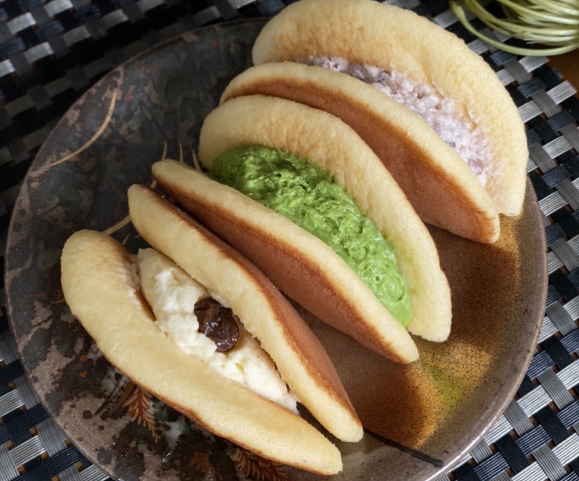 京都の和菓子職人が作る洋風和スイーツ「どら焼き」です。卵、小麦粉、はちみつ、砂糖だけを使って焼き上げた生地は、ふっくら・しっとり食感が特徴。上質で貴重な京のブランド産品「京都産 丹波大納言小豆」使用した「小豆」は、大粒でふっくらとした風味豊かな味わい。石臼でひいたまろやかな味わいのを使用し、香り高く、鮮やかな緑色が美しい「宇治抹茶」。フランス産&オーストラリア産クリームチーズに芳醇なラムレーズンがアクセント「チーズみかさ」の3種セット。京都らしい上品な味わいと、洋風なフレーバーがコラボしたニューテイストなどら焼きです。