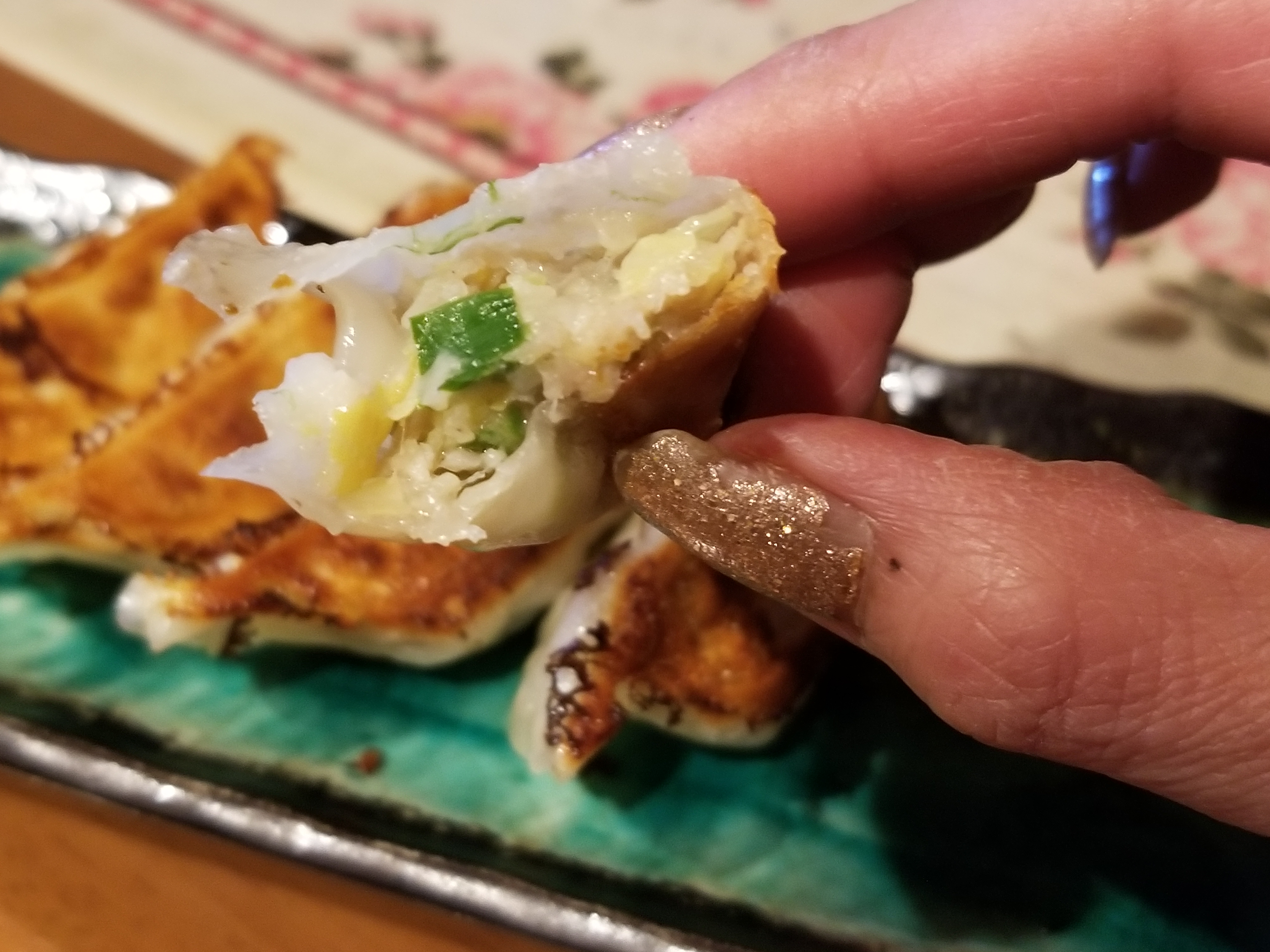ごま油のおかげでふっくらしていた餃子が少しカリッと歯応えのある食感になります。揚げ餃子風。