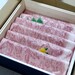 A5ランクの鹿児島黒牛しゃぶしゃぶ・すき焼き用ロース肉です。鹿児島黒牛は、全国の和牛王座を決定する「第11回全国和牛能力共進会」で「全国和牛チャンピオン」に輝いたブランド牛。きめ細かな美しい霜降りならではのまろやかなコクと旨みが特徴です。特許取得の独自技術で食感が残る限界を追求し極限まで薄くカット。コンマ数ミリ単位で切り分け、「0.4~0.7mm/枚」という超極薄肉を重ねる事で口の中で溶ける綿菓子のような食感を堪能できます。