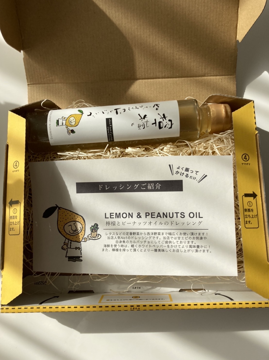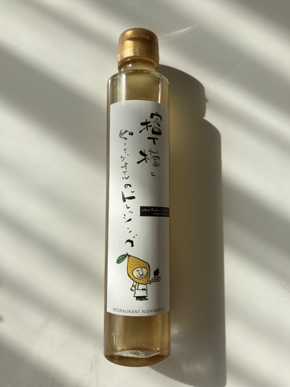 大阪府枚方市の郊外にあるレストランのベテランシェフが作った「ドレッシング」です。自家製の醬油とピーナッツオイル、レモンがベースどこか懐かしさを感じさせる味わいです。オイルベースのドレッシングなので苦みのある野菜がマイルドになり、日本人好みの醤油味で飽きることなく楽しめます。サラダだけでなくレストランではカルパッチョやお刺身にも用いられるなど、利用範囲の広い商品です。