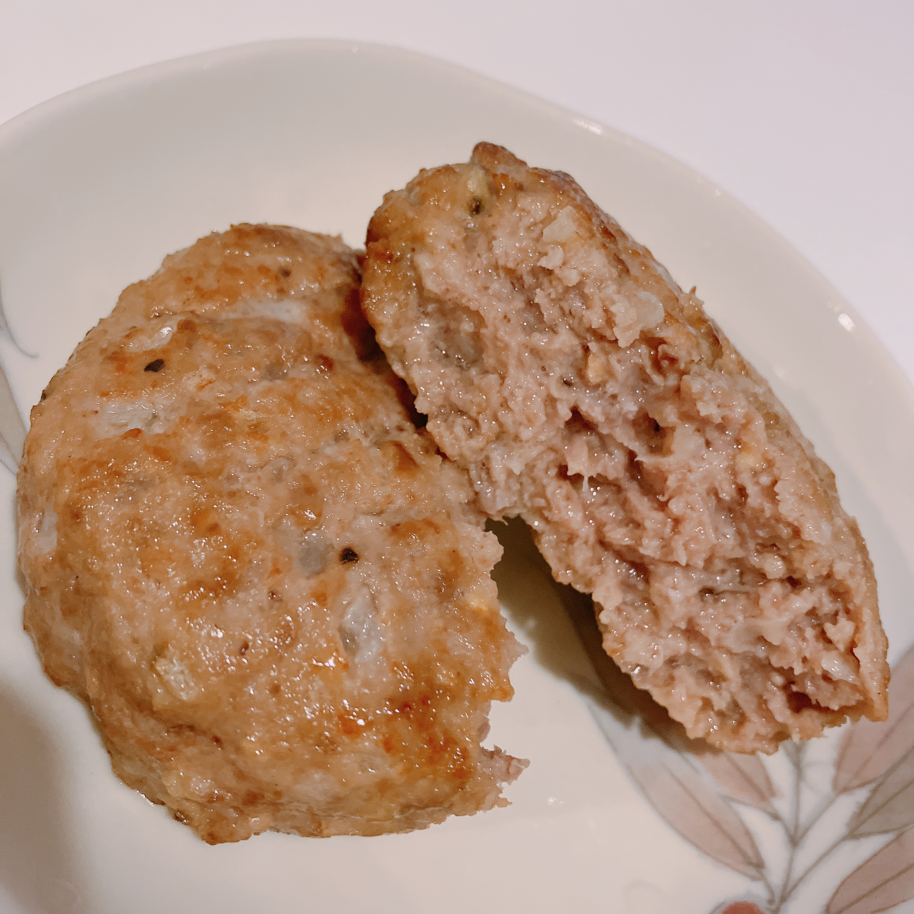 バンズはトースターで軽く焼いて。パテは凍ったまま袋ごと湯煎して温めました。肉汁がじゅわっと溢れていました。
