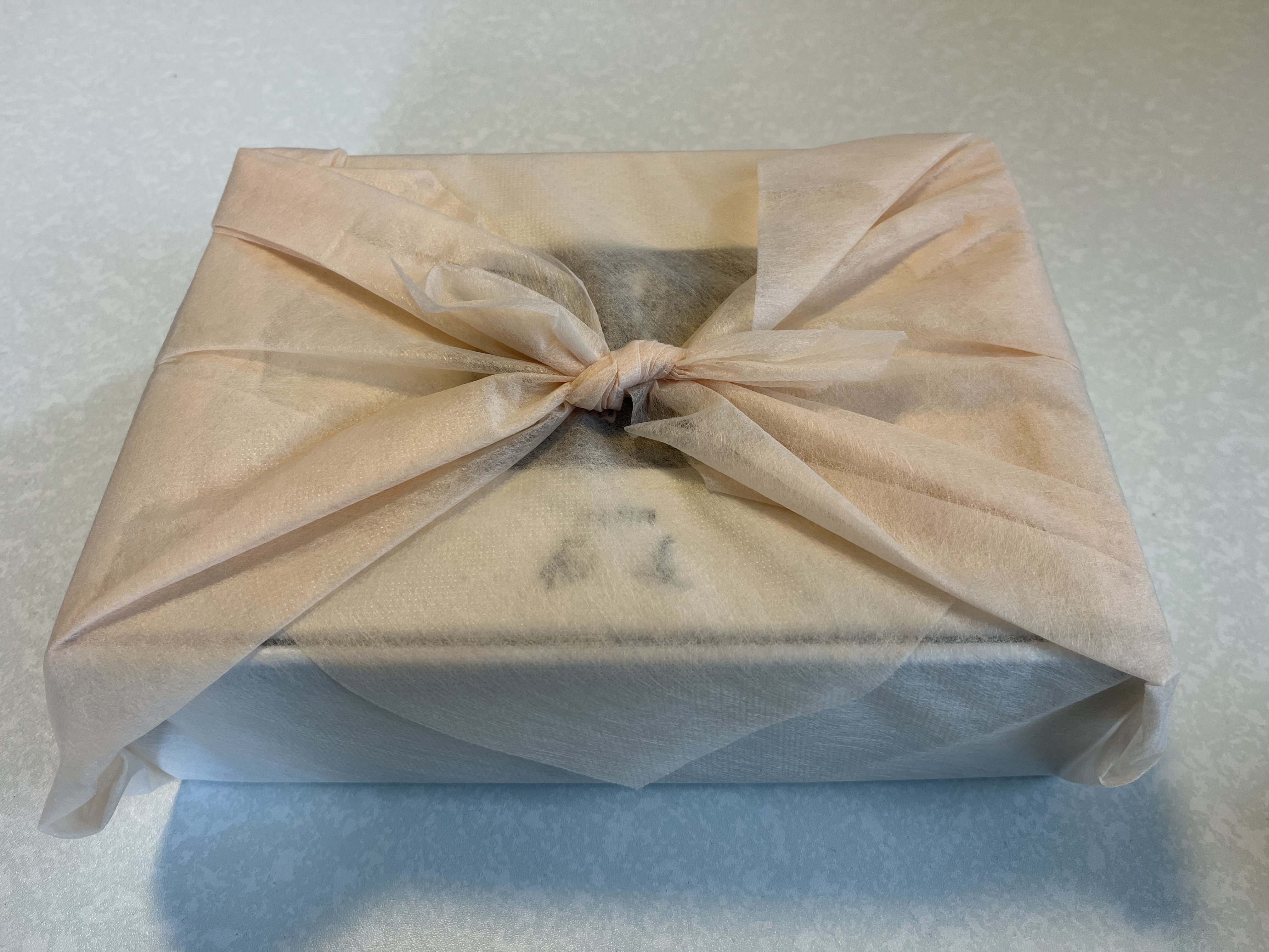 梱包袋をあけると品のあるシルバーの箱があらわれました(19×25.5×8㌢)。
