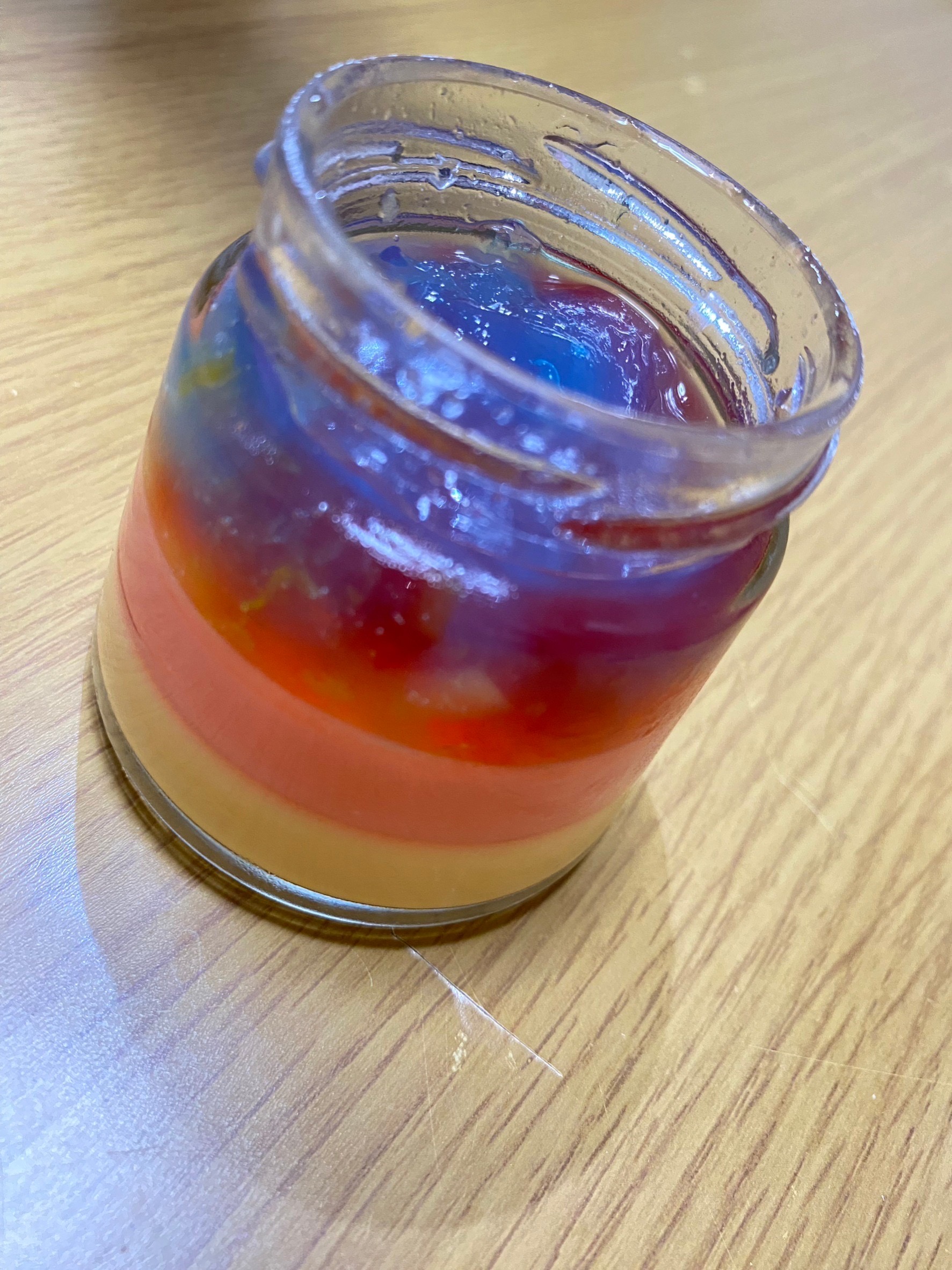 大人気!大阪みっくすジュースプリンは、各層毎に味が異なります。混ぜてお召し上がり頂くと、みっくすジュースのような味わいになり、ジュレの触感も楽しみながら美味しく召し上がれますので、是非豪快に混ぜてくださいね♪
