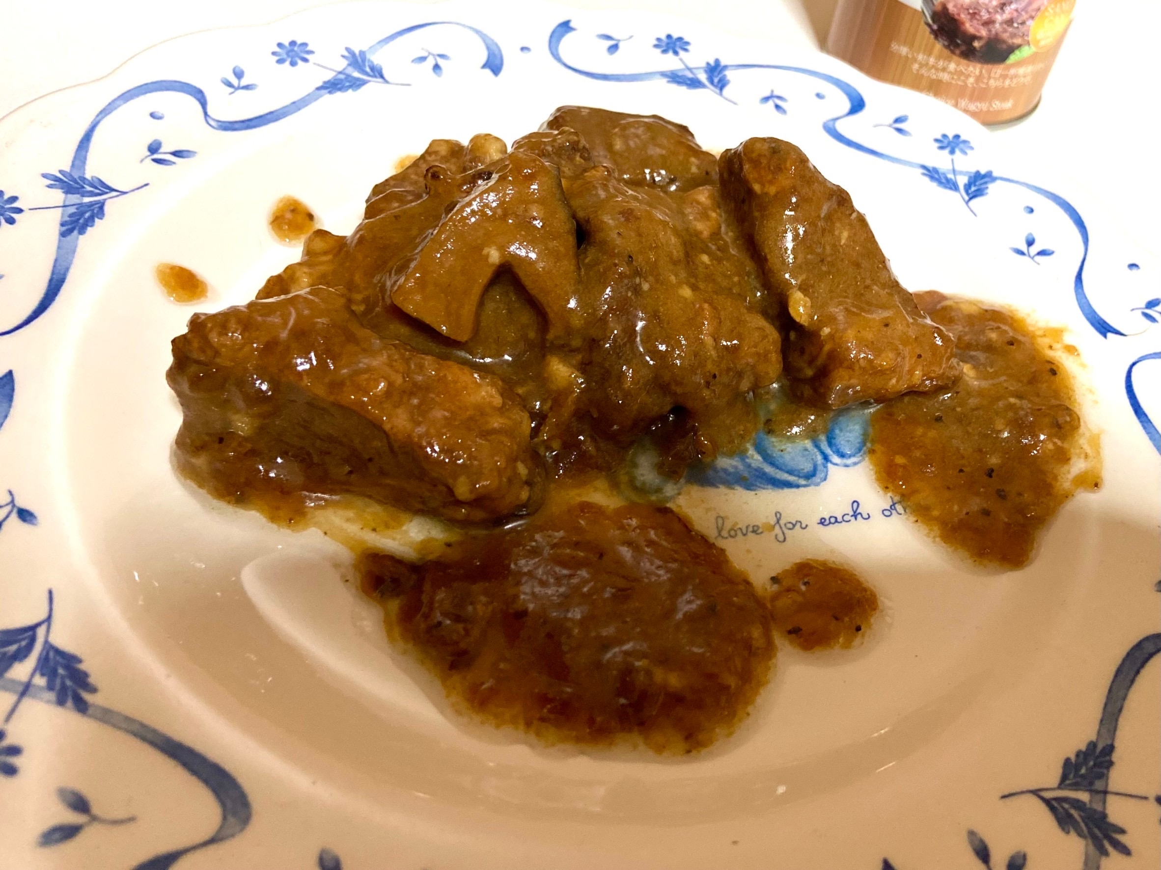 果たしてステーキを缶詰で食べられるのか?と、一番気になっていた一品でした。缶を開けると、中にぎっしりとお肉が詰っていて、お皿に乗せるとボリュームがあり、立派な一品となりました。