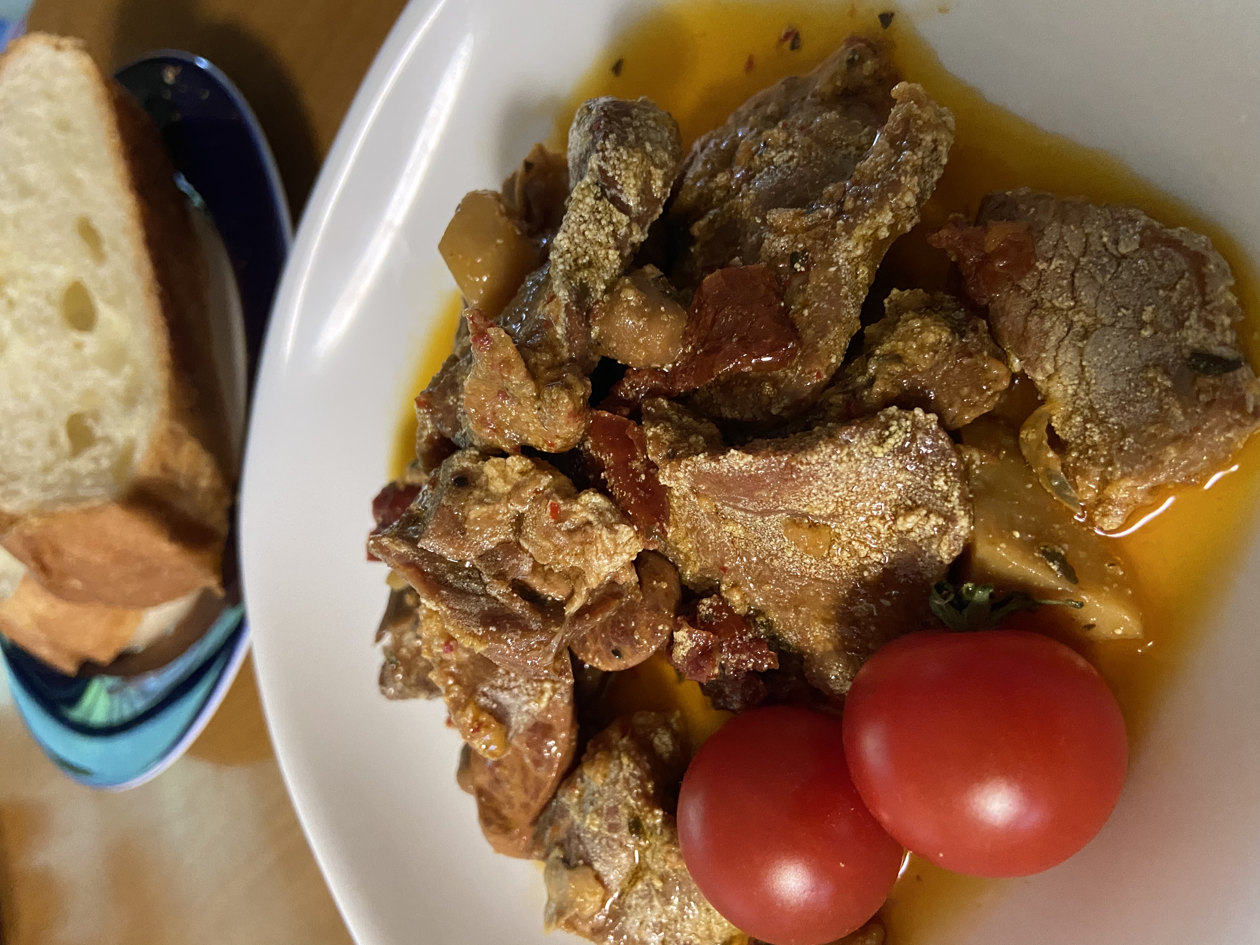 こちらも、説明書き通り、お肉がものすごく柔らかく、ソースに絡まり、どちらかというと、ビーフシチューのようでもあり、若者には一番人気でした。