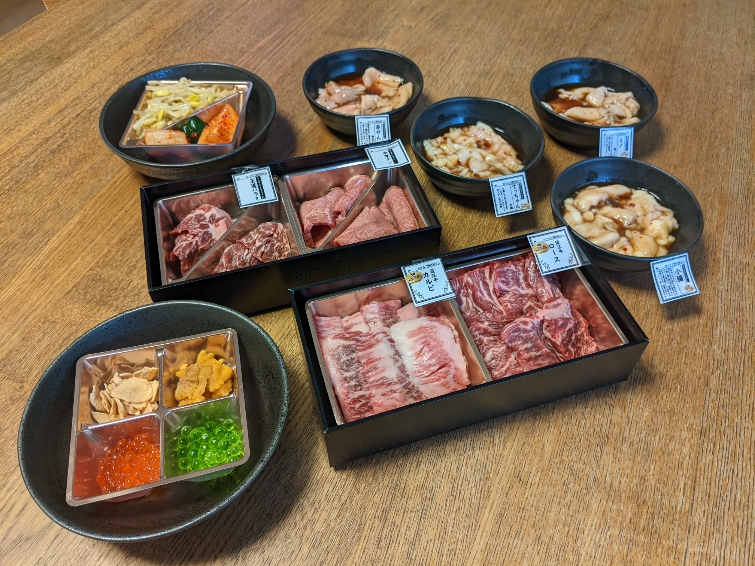 セットで、うにやイクラに始まり、キムチまであるので組み合わせ次第で味変無限大です。次はこれ試してみたいとワクワク楽しく頂けます!パーティ感ある贅沢焼肉です!