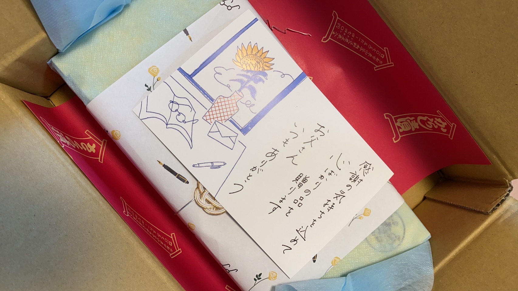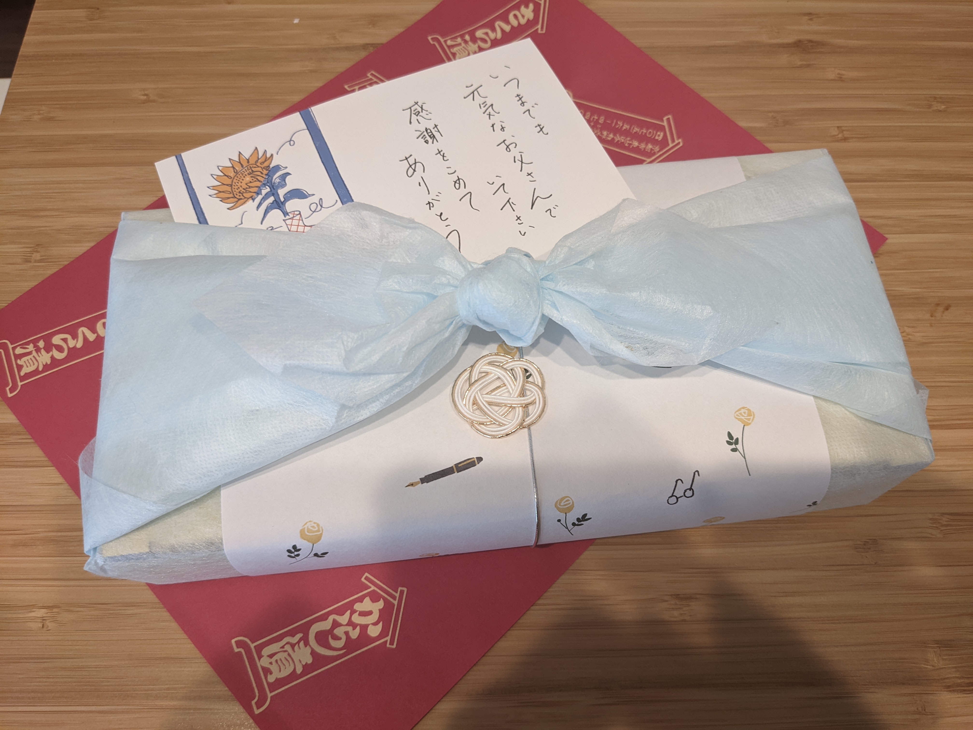 ふわふわの不織布で包まれていて、包み方もギフトらしく、メッセージカードがついているのも好印象でした。