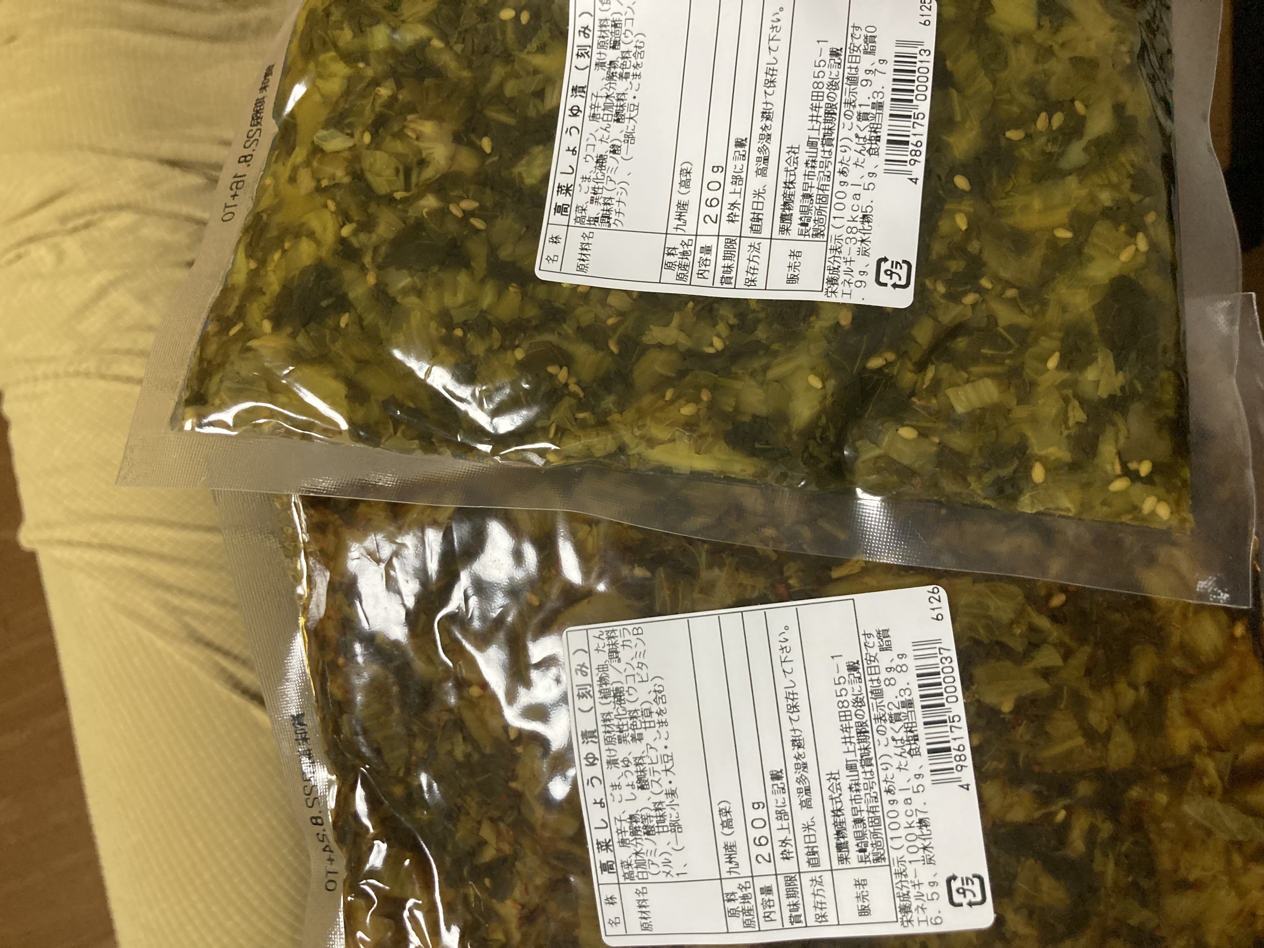 続いて『辛子高菜』ですがお子様にはちょっと早い大人の味です。クセになりそうなピリ辛感がたまりません!これだけで酒のつまみになります。玉子焼きのアクセントとしてやラーメンのトッピング、さらにパスタに和えてもホントにグッドで美味しいです!