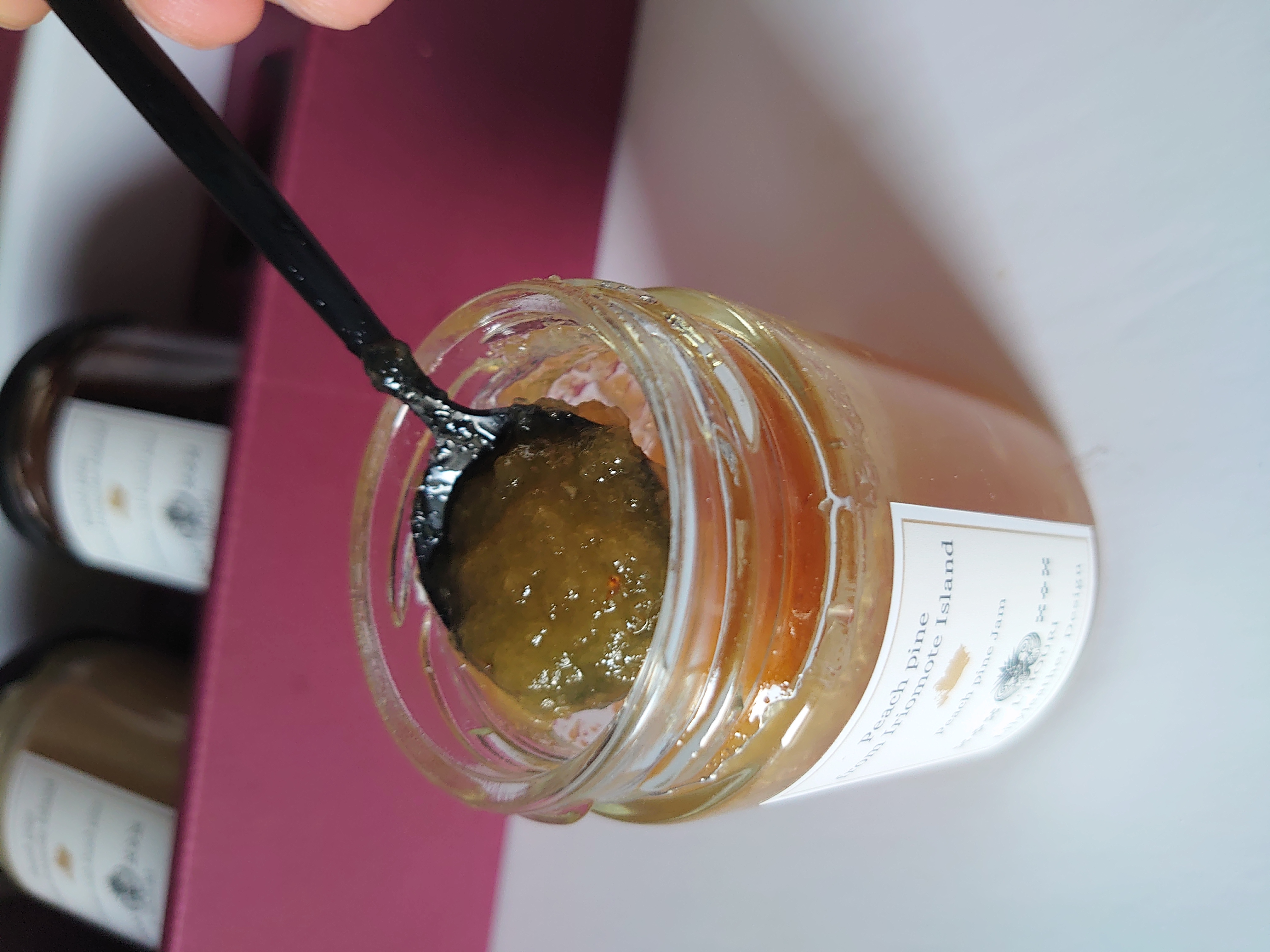 チョコレートコンフィチュールでありながらピーチパインの酸味がちょうど良い程度に働き甘すぎないサラッとしたチョコレートでした。トーストに塗って頂き美味しかったです。