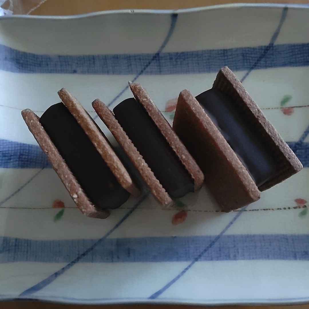 とてもミルキーなコクがあり、ミルクチョコを心ゆくまで堪能できる大人も子供も大好きな味だと思います。ミルクチョコならではのまろやかな優しい甘さの中に、鼻に抜けるカカオの大人の風味もほのかに広がるバランスの取れた味わいにうっとり。食べる前は味の想像がつくと思っていましたが、期待を上回る程にチョコのおいしさをストレートに楽しめる究極のチョコサンドです。家事やリモートワークの合間に頂くとホッと癒され、ティータイムのお供に最高ですね。