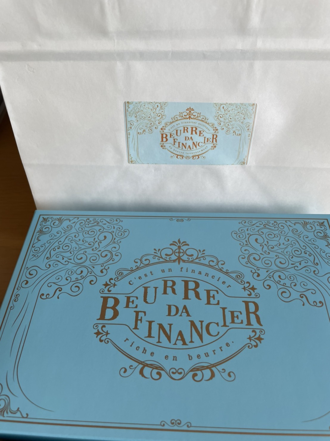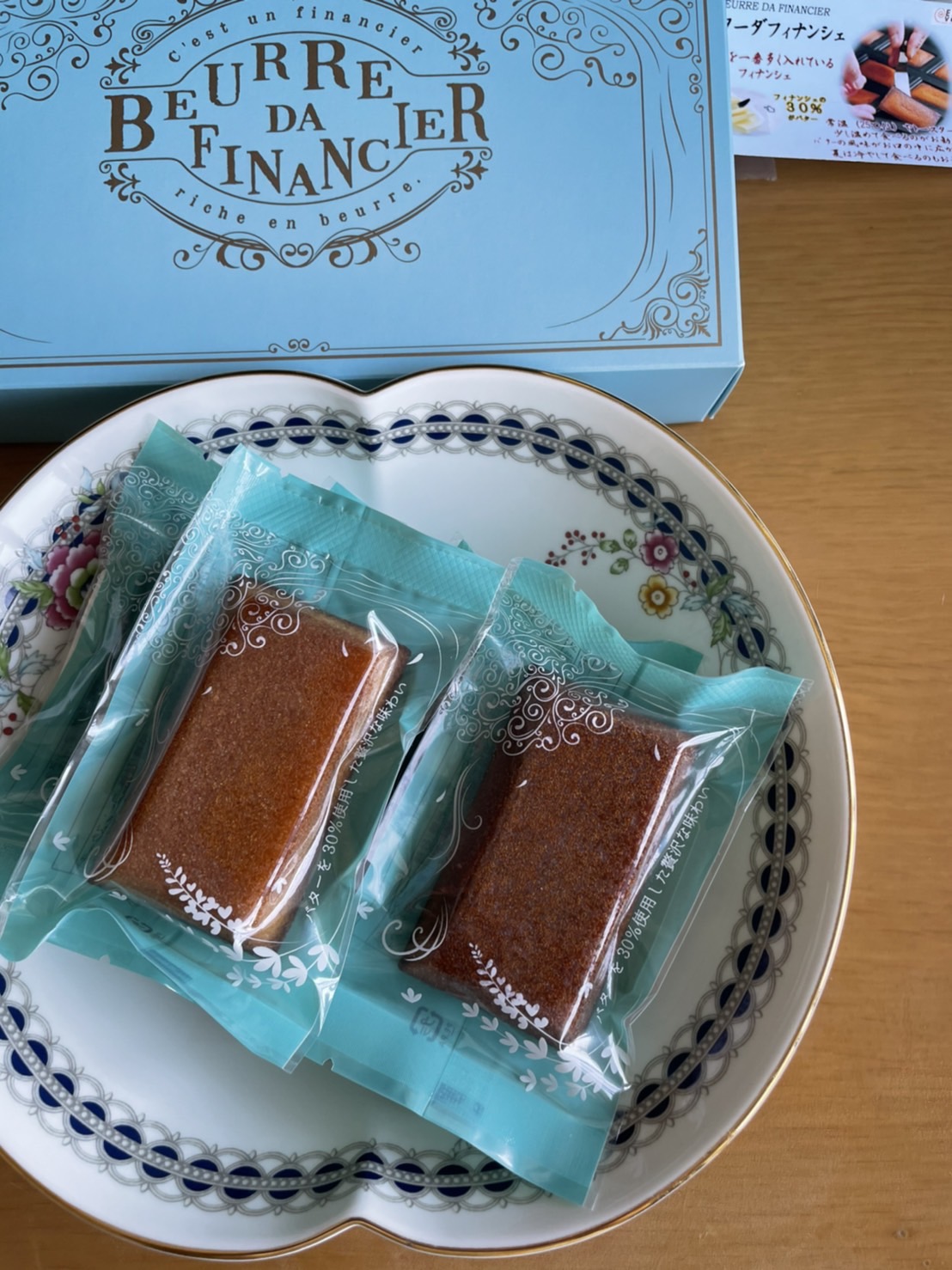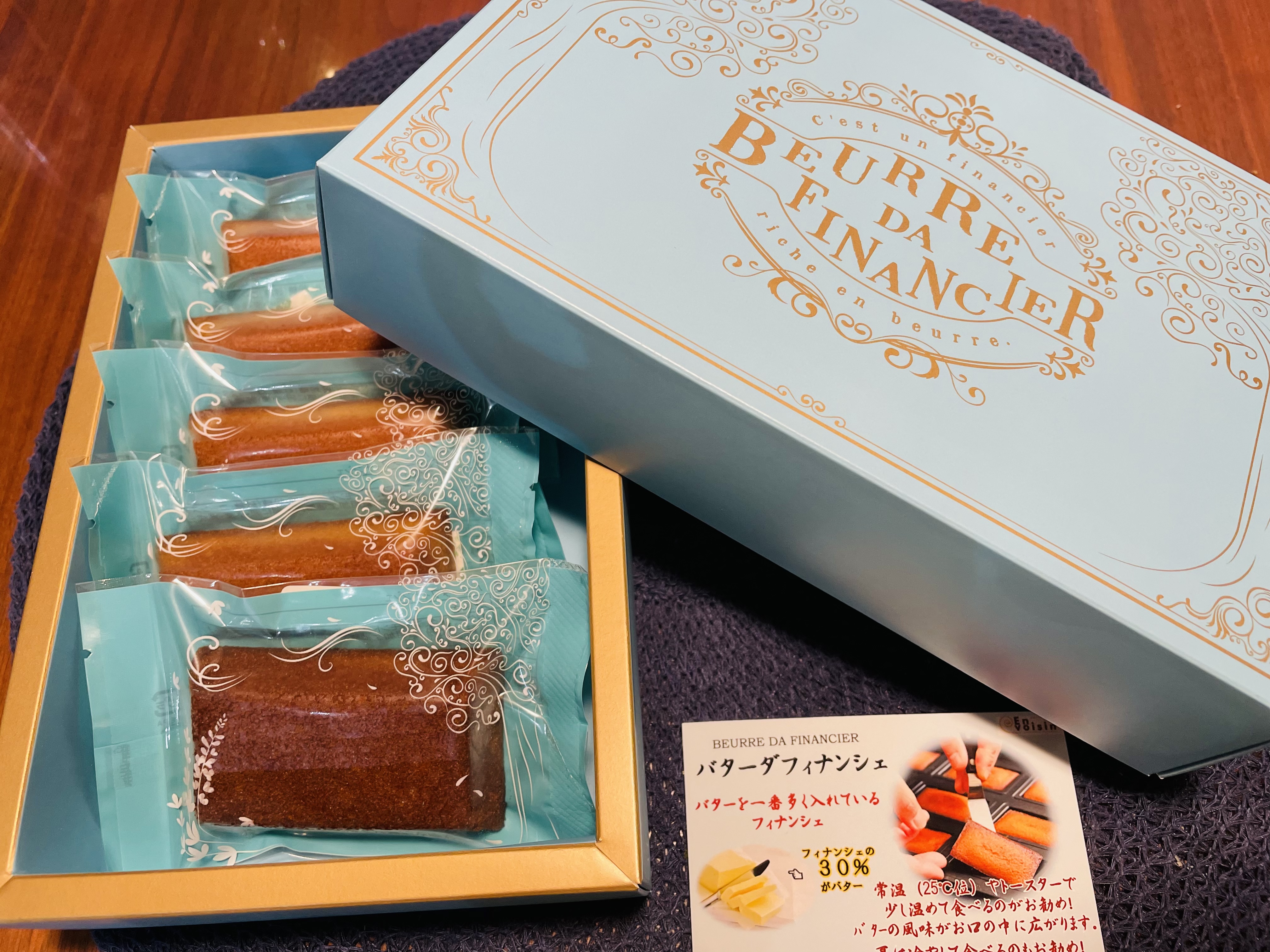 今回はこだわりバターをふんだんに使用したフィナンシェです。箱を開けるとオススメの食べ方のカードがありました(^^)