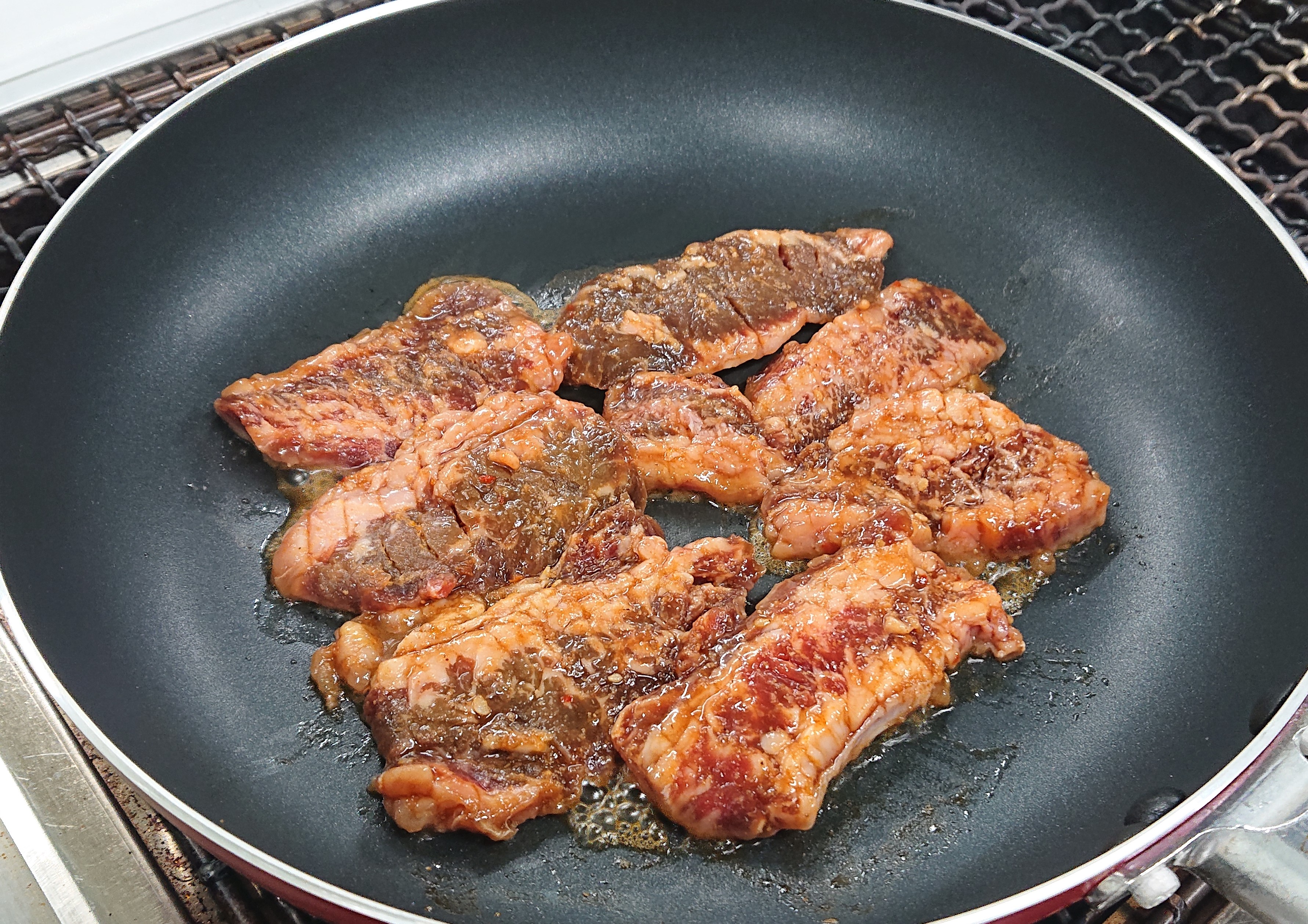フライパンを温めて高温で一気に焼き上げるのが美味しく召し上がるコツです。油は不要です。