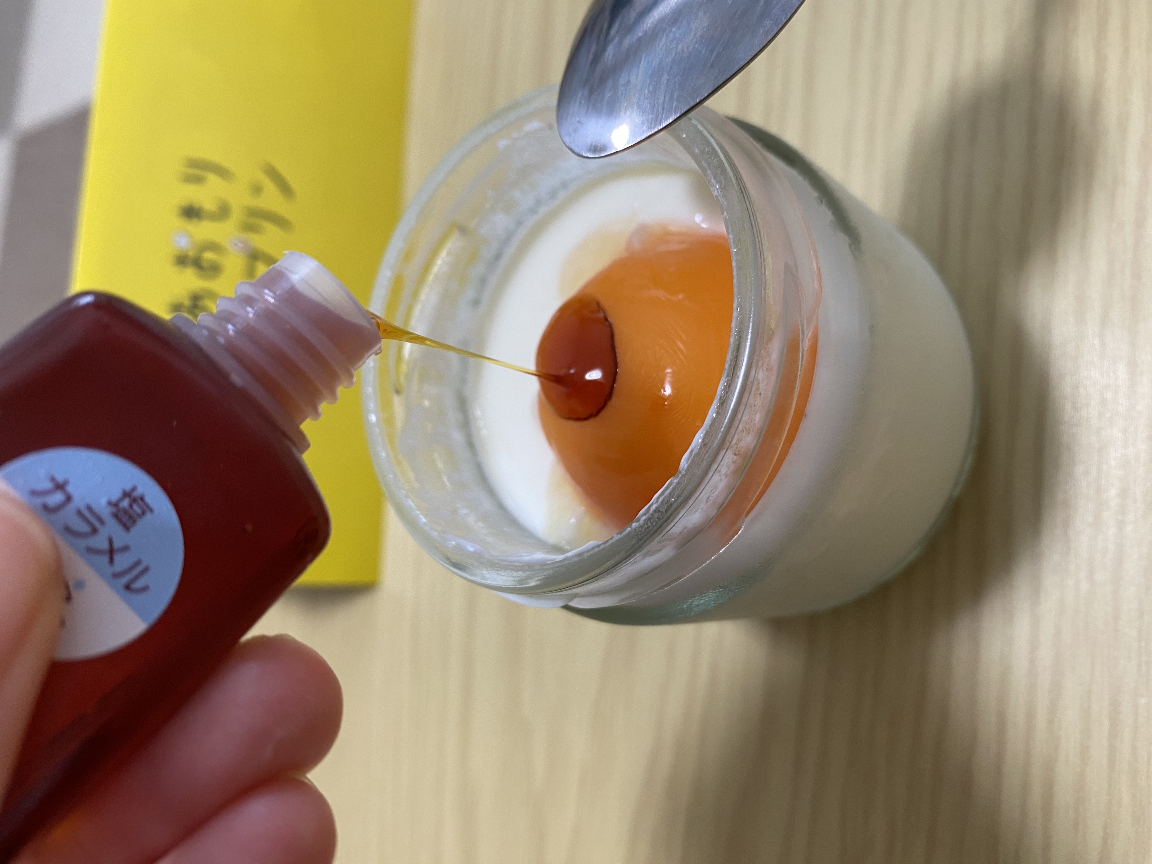 それぞれのお味の感想は、まず塩カラメルの方にカラメルソースをかけて一口…苦味もあるけど甘さもあってめちゃくちゃ美味しいー!そして...