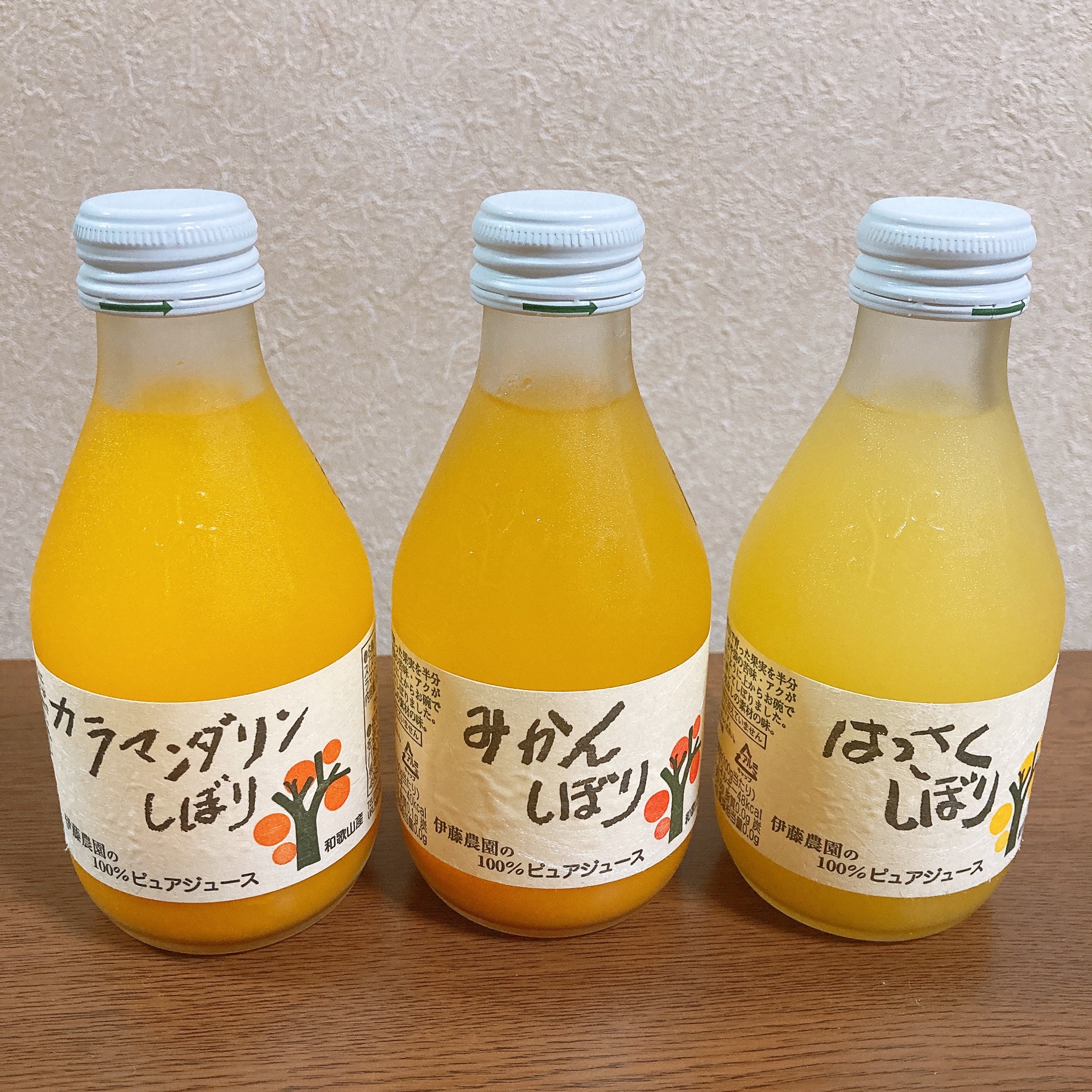 みかんジュースではなく「みかんしぼり」という商品名に、納得!みかんをがぶっと食べたときのような、しっかりとしたみかんの味わいです。とっても甘くて美味しいです。
