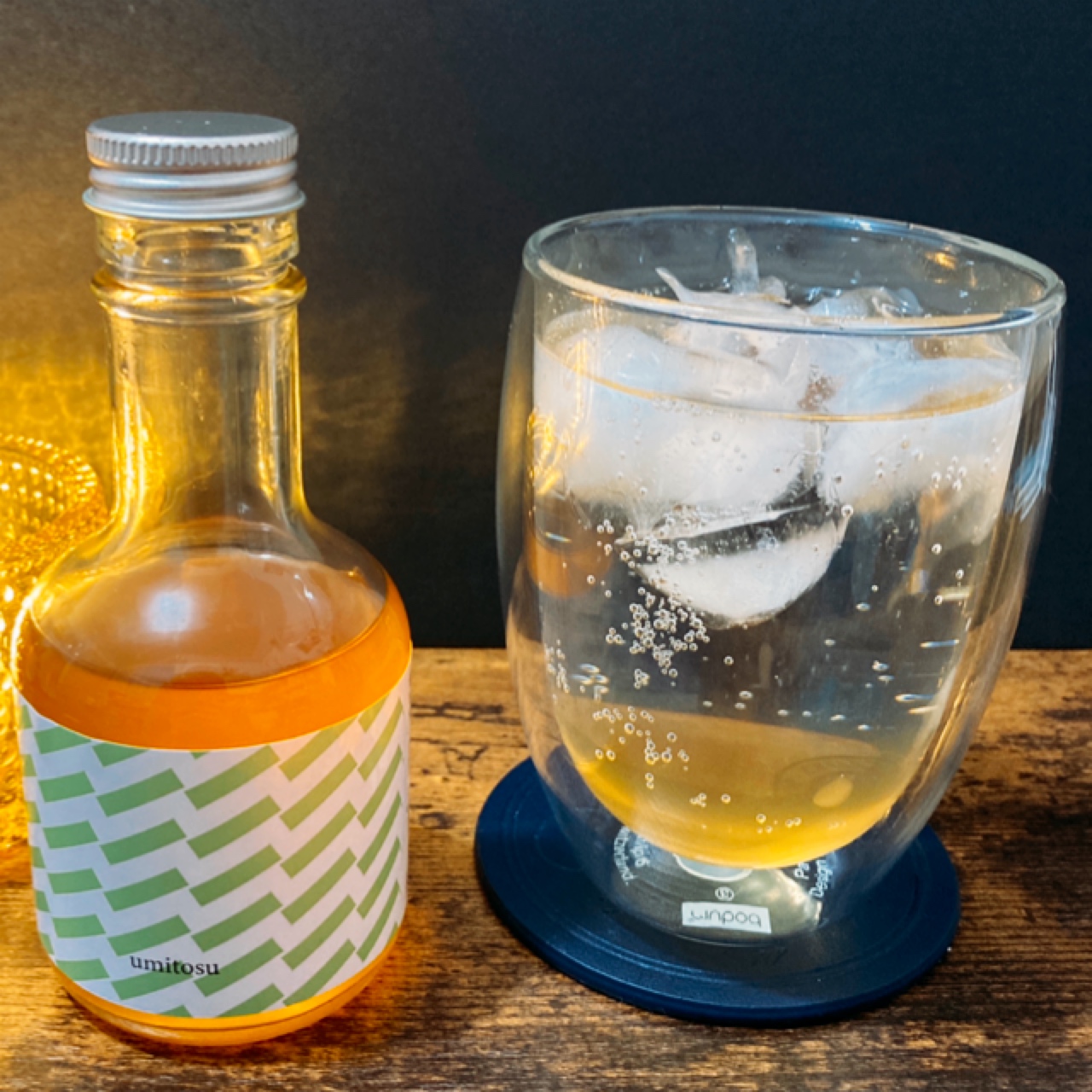 デザインだけでなく、美味しさにもこだわったumitosuは、2種類のお酢をブレンドしたまろやかなお酢の味わいが特徴です。フルーティーで飲みやすく、炭酸・牛乳・紅茶・お酒など、自分好みの割り方でお楽しみいただけます。