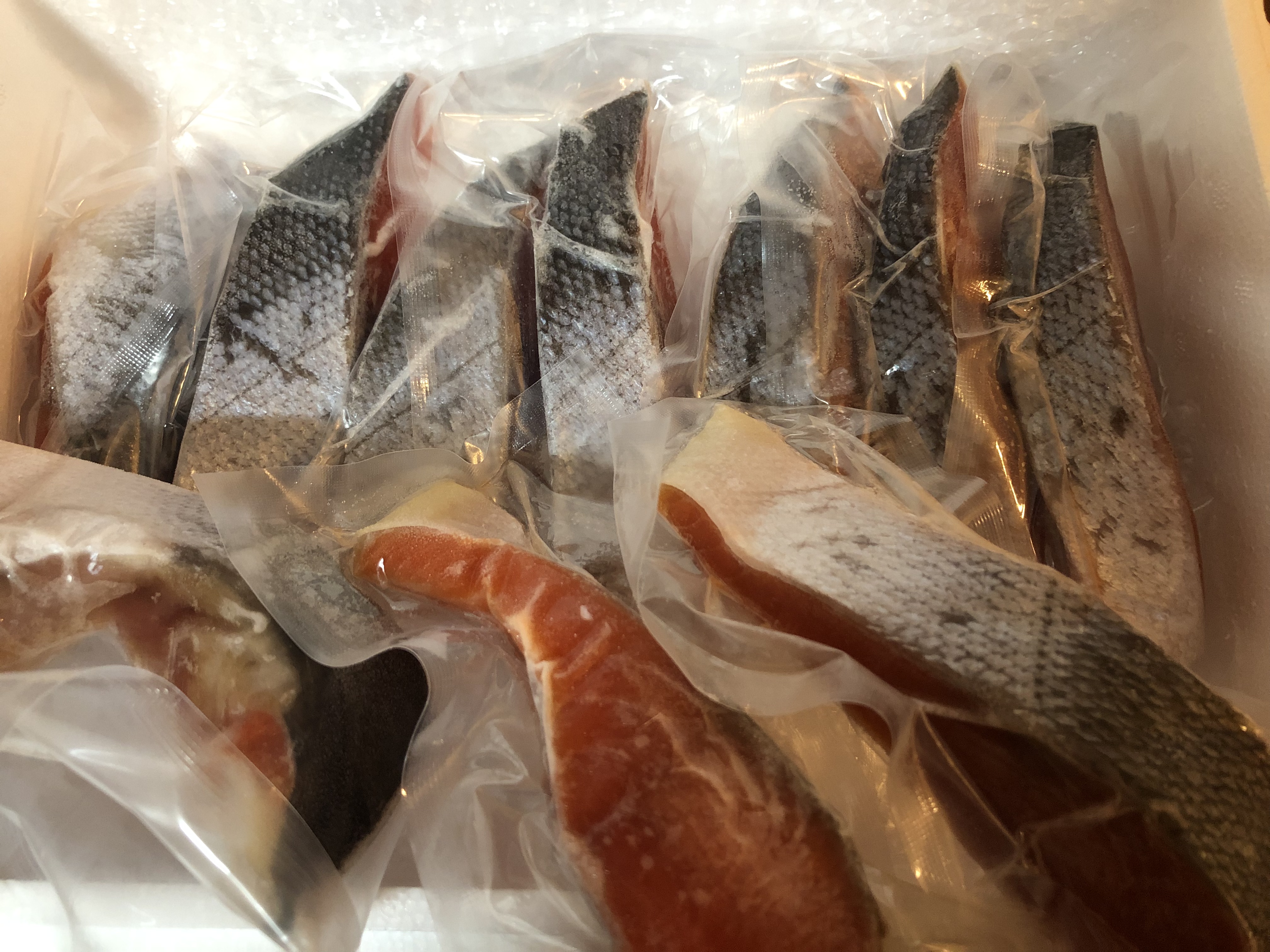 カマと尾の部分と、形の良い部分が8切れも入っていました。肉厚で見栄えも良いので、お客様が集まる時などにも良いなーと思いました。